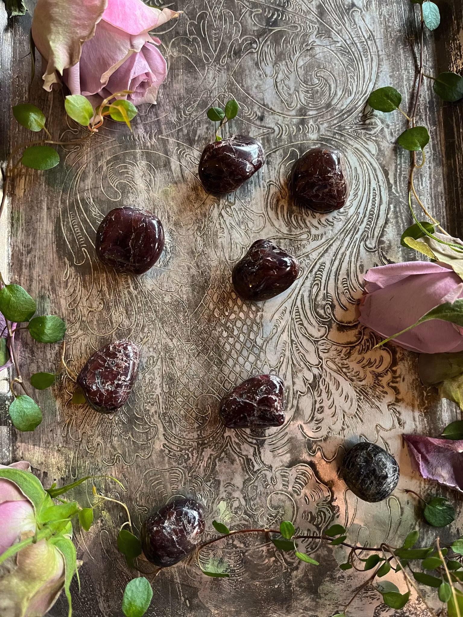 Kraftfulla Granater kan rensa och rena chakran från negativa energier och energisätta dem. Bra att använda vid kontroll av den uppåtgående kundalinienergin. Granater drar till sig kärlek, passion och lojalitet uppmuntrar till personliga förhållanden i kärlek och business.