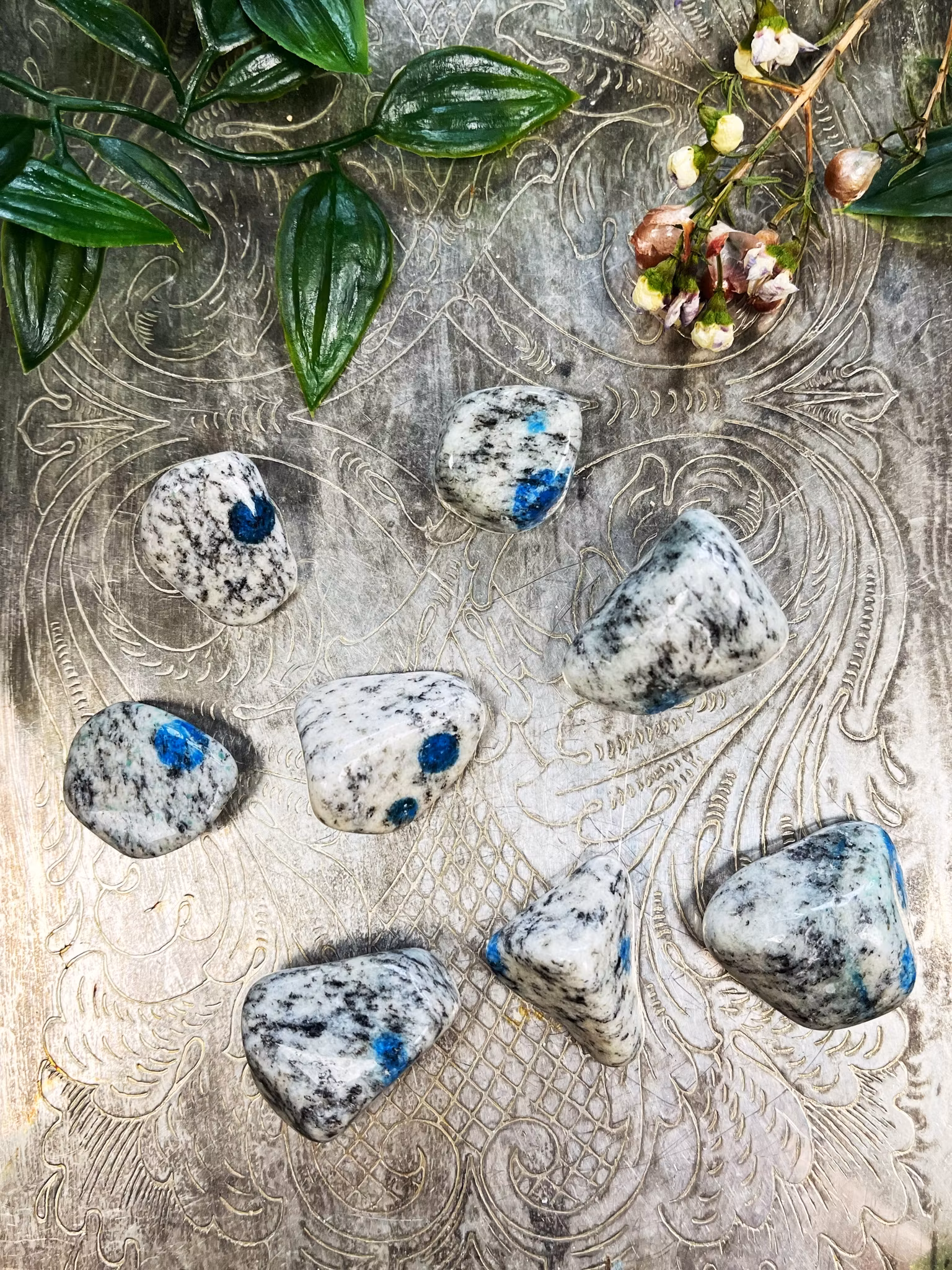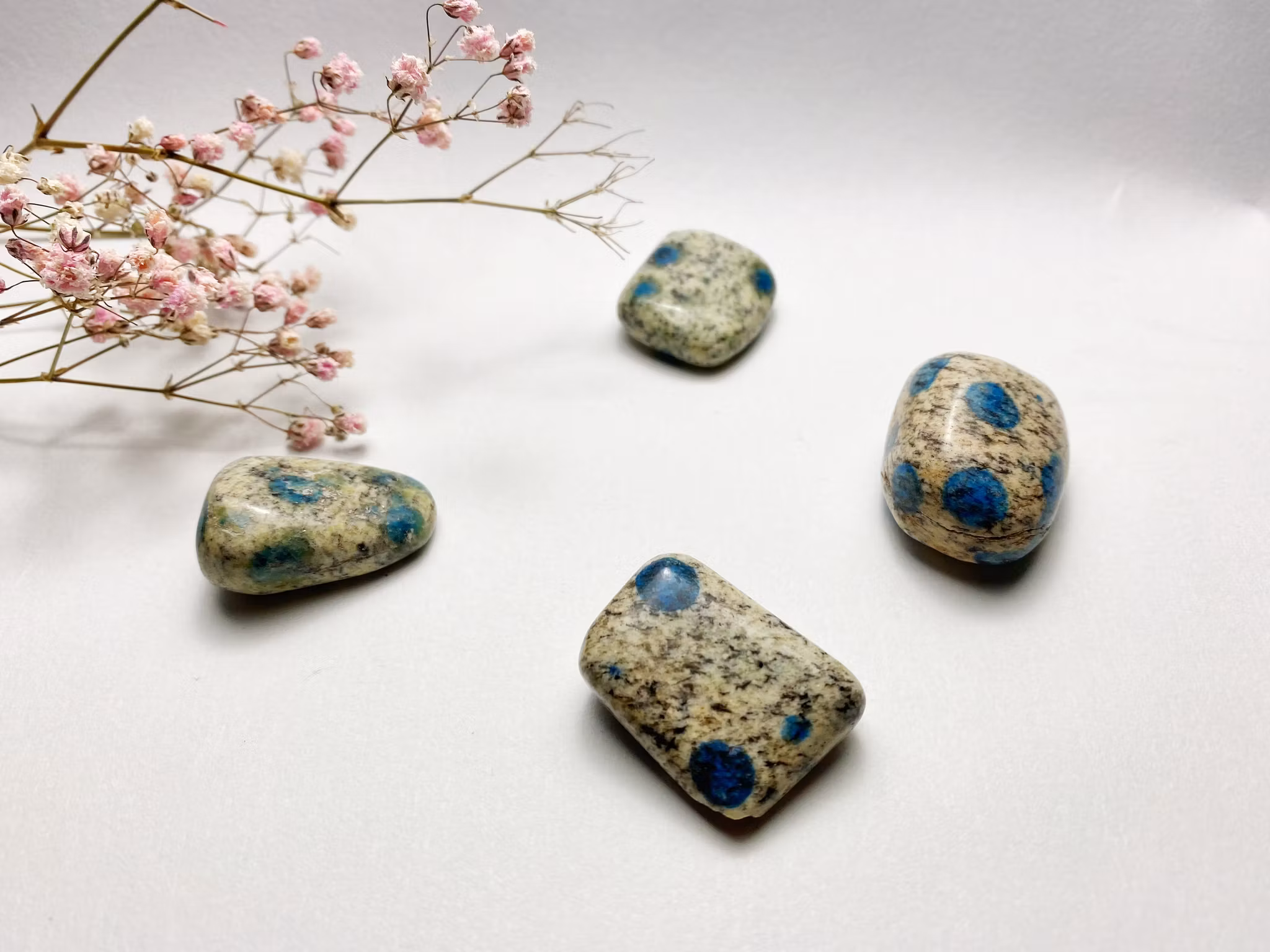 K2 består av Azurit och Granit, den hittas i foten av berget K2 därav namnet. Det är en underbar sten att använda sig av vid healing. Placera k2 på din panna och andas in healing energierna från stenen. Den skyddar dig vid mardrömmar och tillåter dig bli medveten om det undermedvetna.