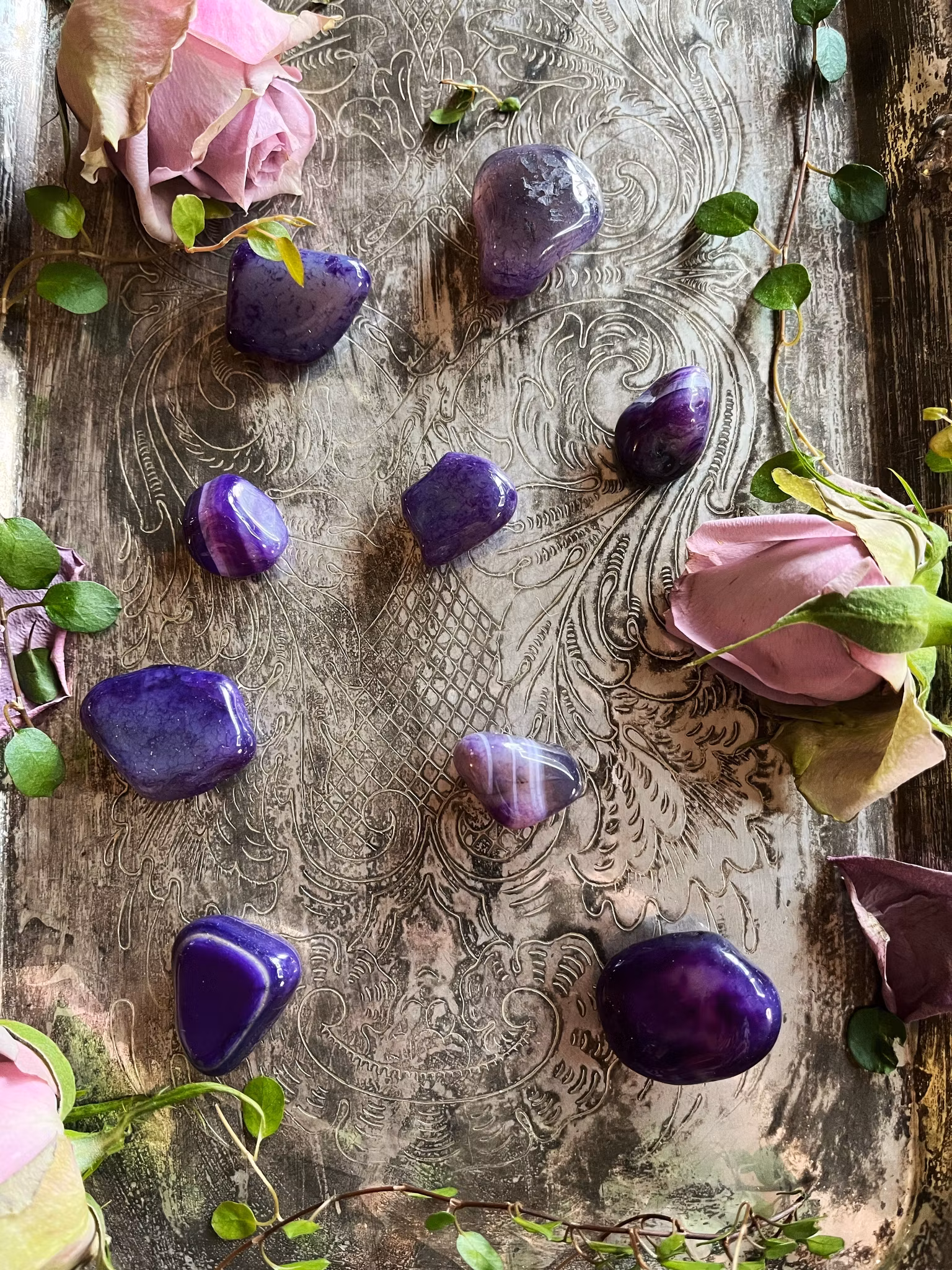 Lila Agat är en kristall för drömmar, intuition och lyx. Det är en healing sten för kron chakrat som hjälper till att väcka upp din andliga sida. För ner andliga energi genom ditt kron chakra.