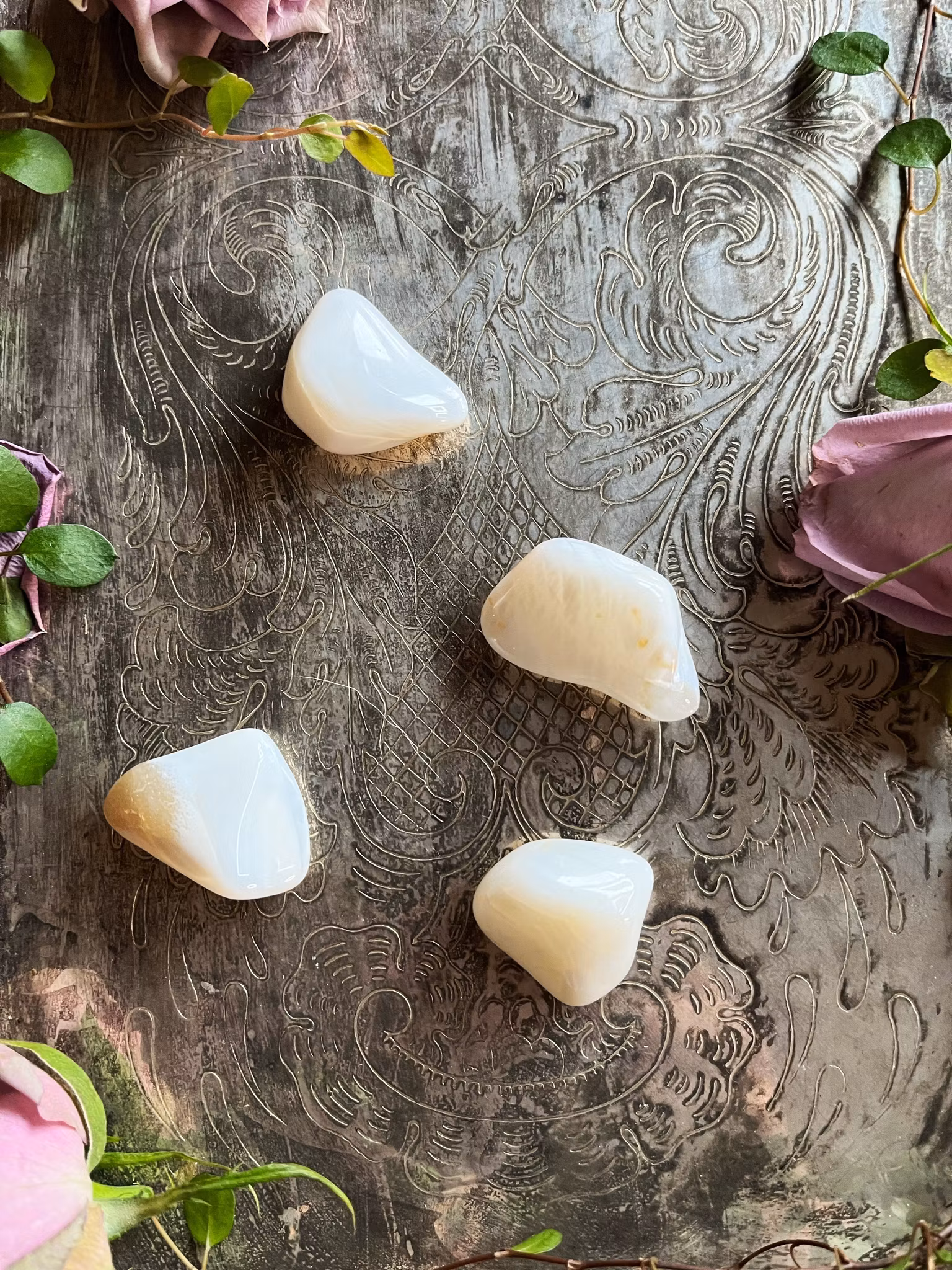 Vit eller mjölk opal hjälper dig bli mera vaken på vad som händer i olika situationer. Den verkar på att du ska acceptera dig själv och andra precis som du är. Förstärker kommunikationsförmåga och uppmuntrar kamratskap med andra.
