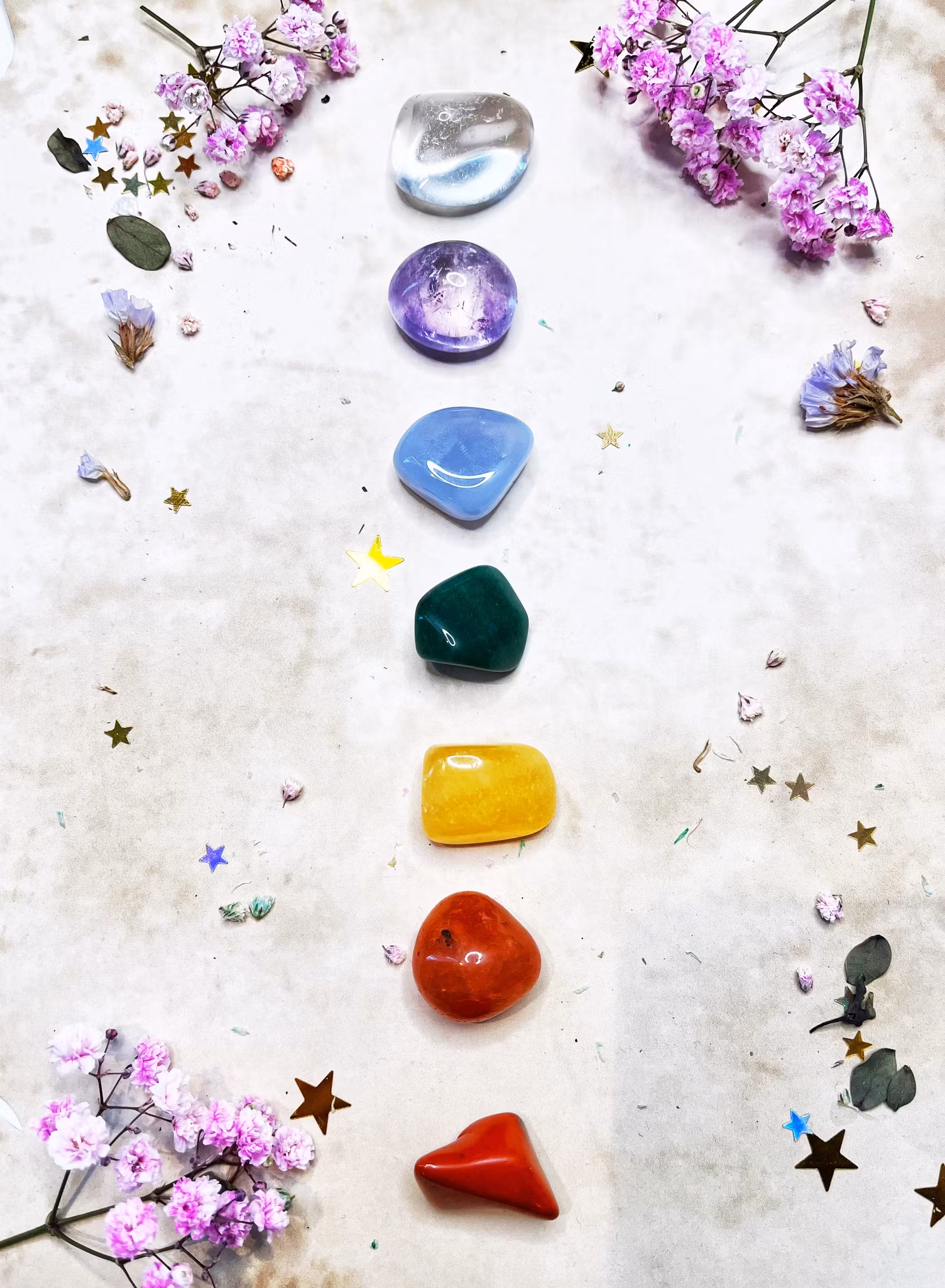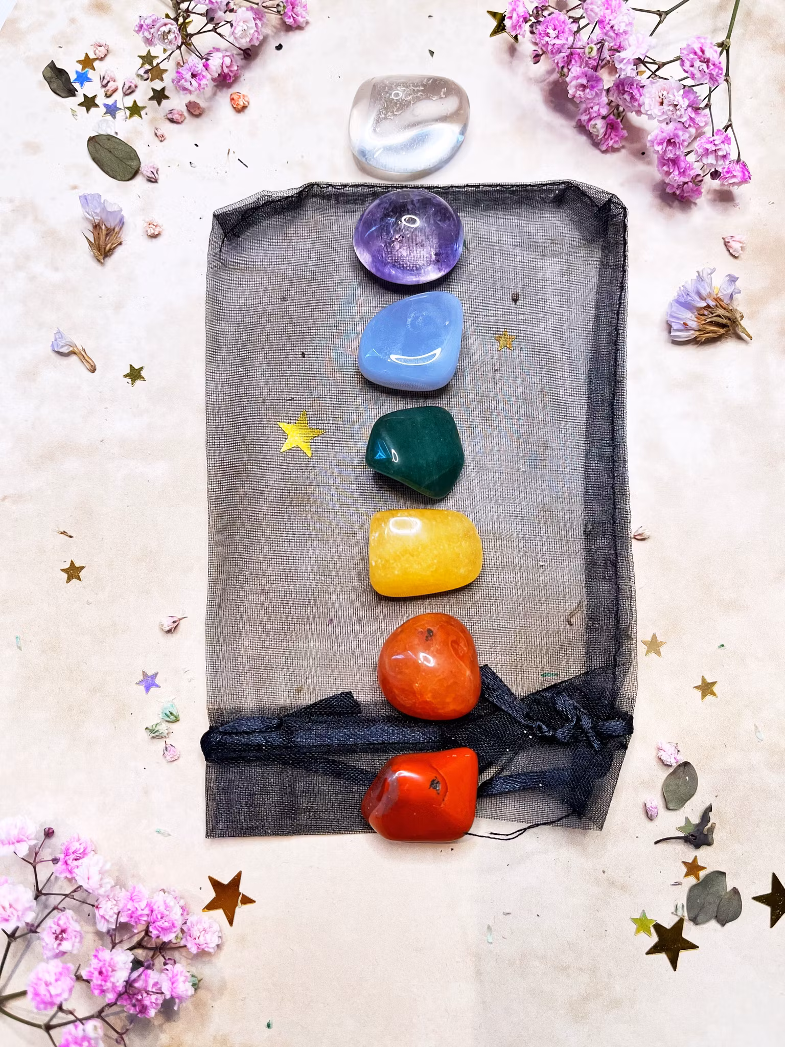 Ett set med 7 utvalda kristaller ett för varje chakra.