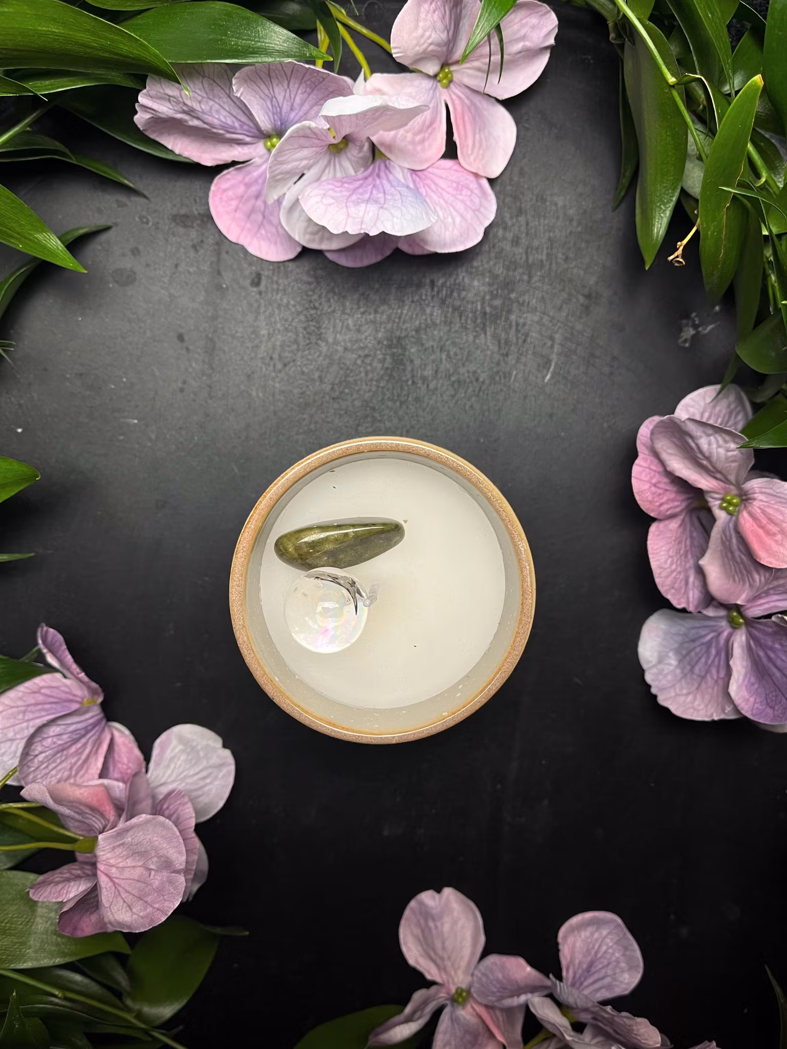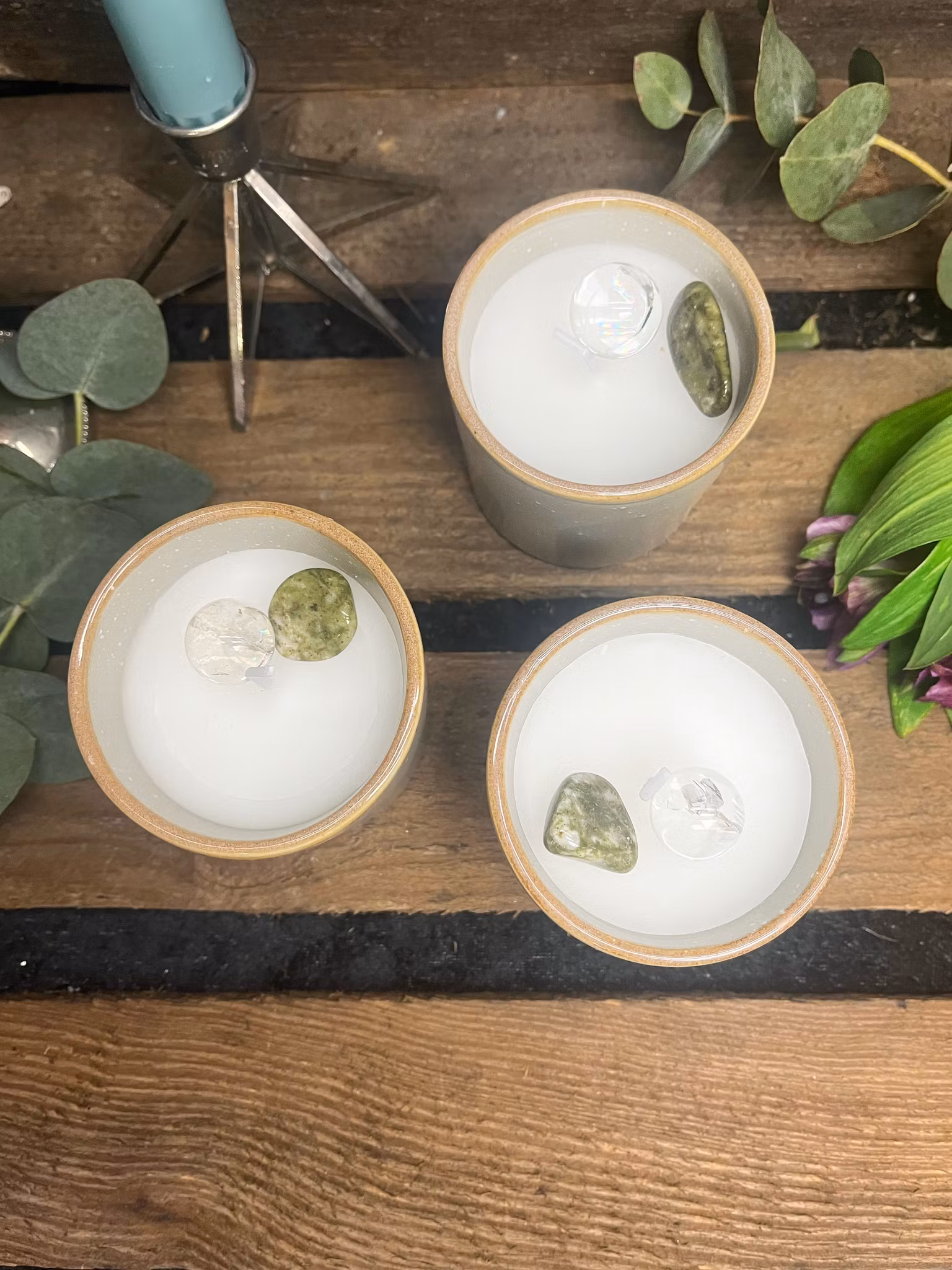 Härliga ljus i keramik. Kristallerna kommer löst till ditt ljus. Lägg dom i ljuset innan du tänder det. Tänk på vad du vill att ljuset skall ge dig!