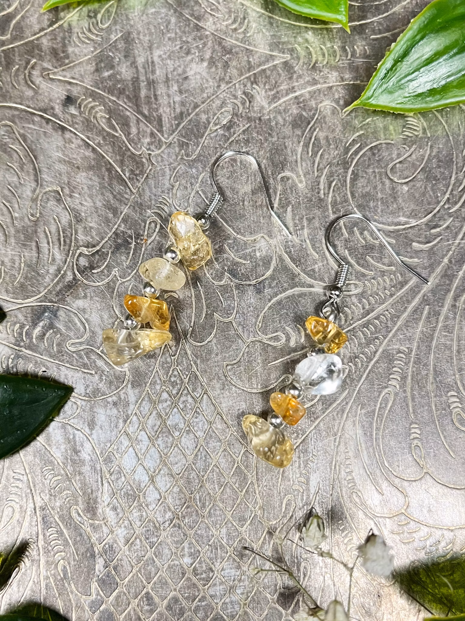 Örhängen med citrin . Nickelfria öronkrokar i silverpläterat stål.