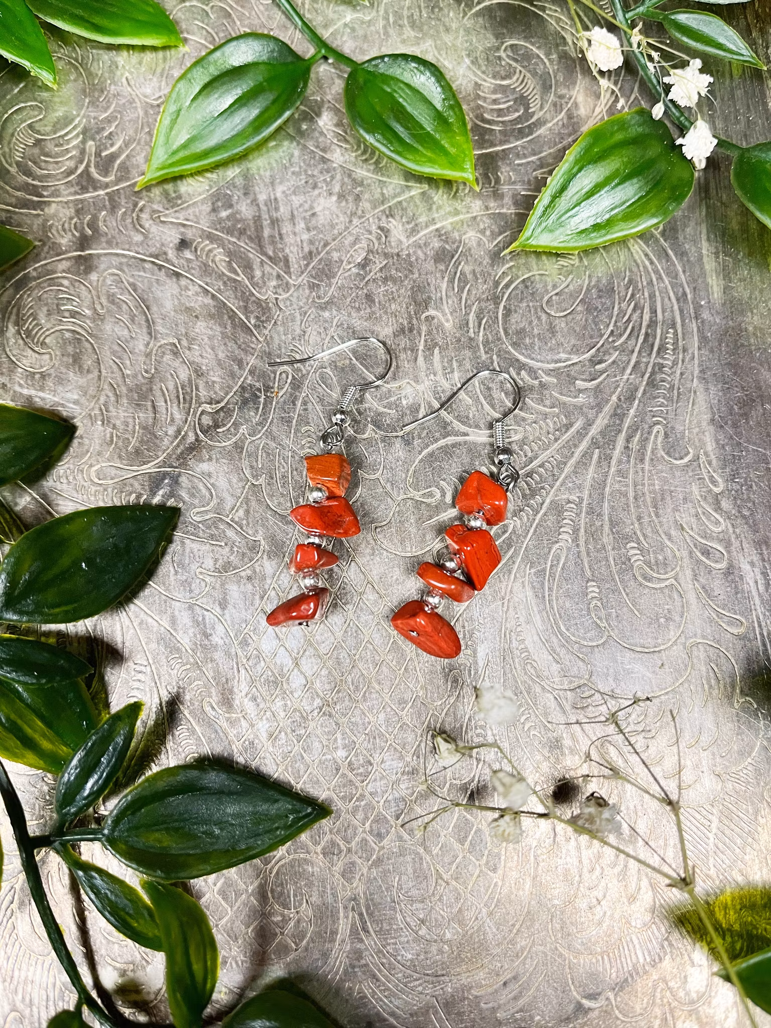 Örhängen med röd jaspis. Nickelfria öronkrokar i silverpläterat stål.