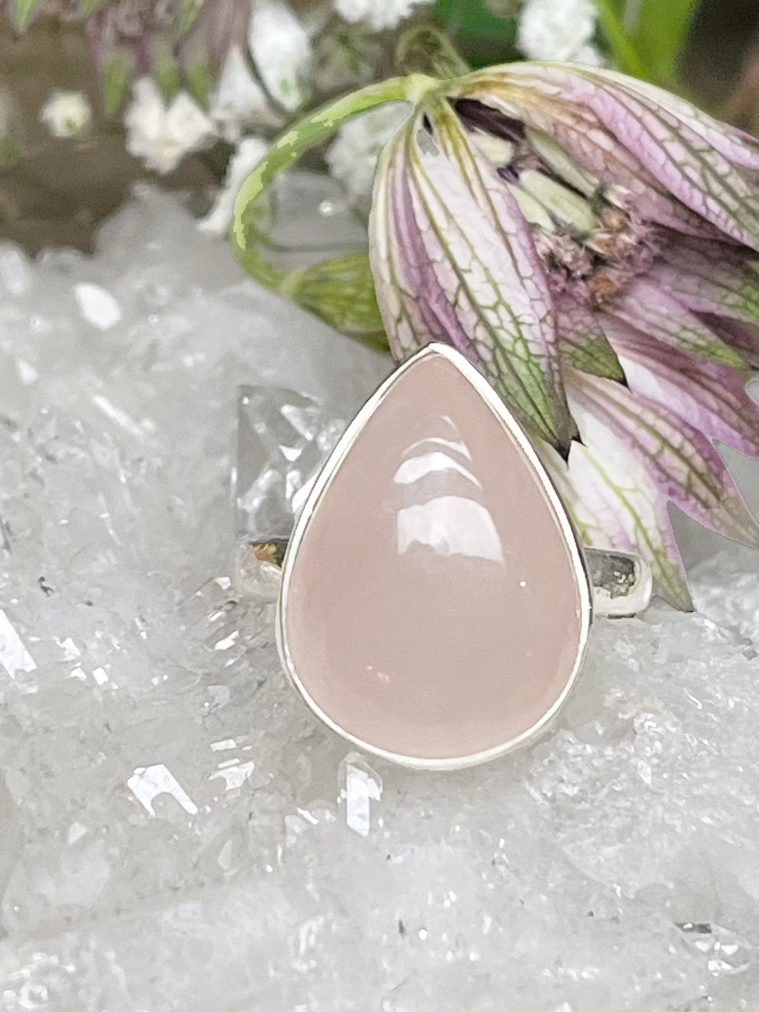 Ring med rosenkvarts infattad i 925 sterlingsilver. Stl 6 16,51mm