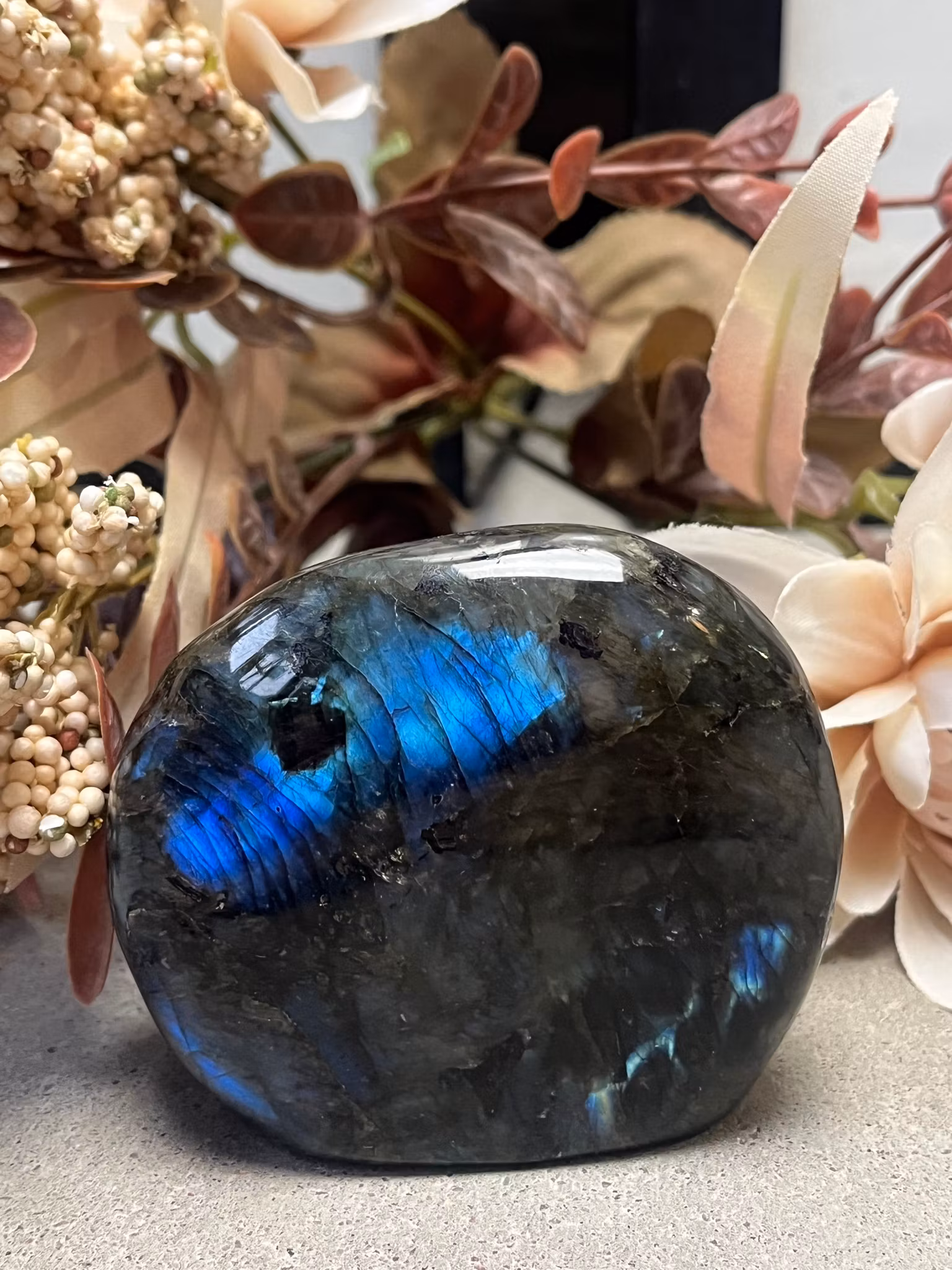 •Egenskaper: Labradorit är en kraftfull och mystisk kristall känd för sina fantastiska iriserande färger och sitt skyddande energifält. Den är starkt förknippad med intuition, andlig medvetenhet och skydd. Labradorit stimulerar det tredje ögat och kronchakrat, vilket öppnar för högre medvetenhet, intuition och psykiska förmågor. Den hjälper till att rensa bort negativa energier och blockerar destruktiva influenser. Labradorit skyddar mot energiutsläpp och negativa vibrationer från andra människor.
