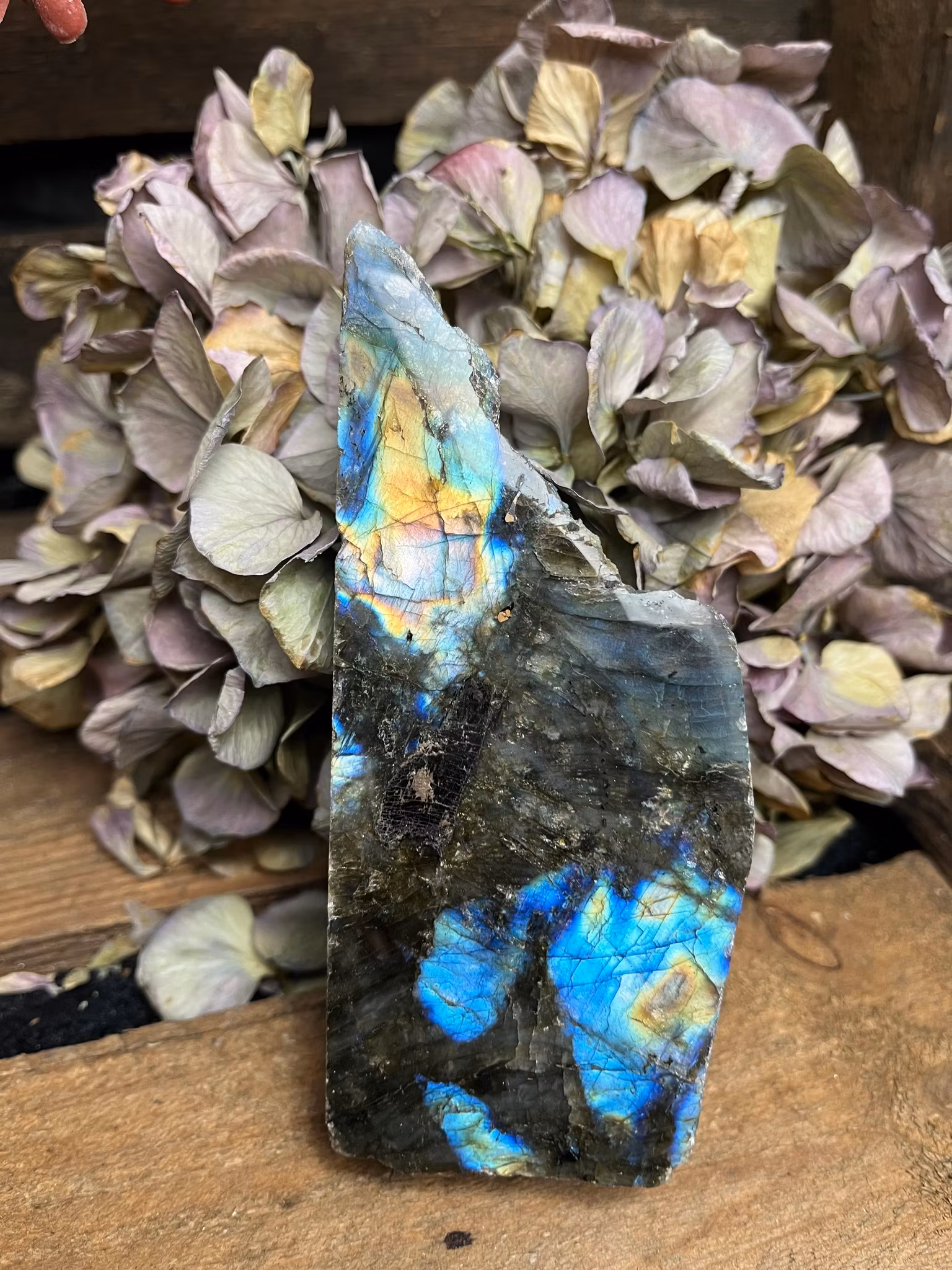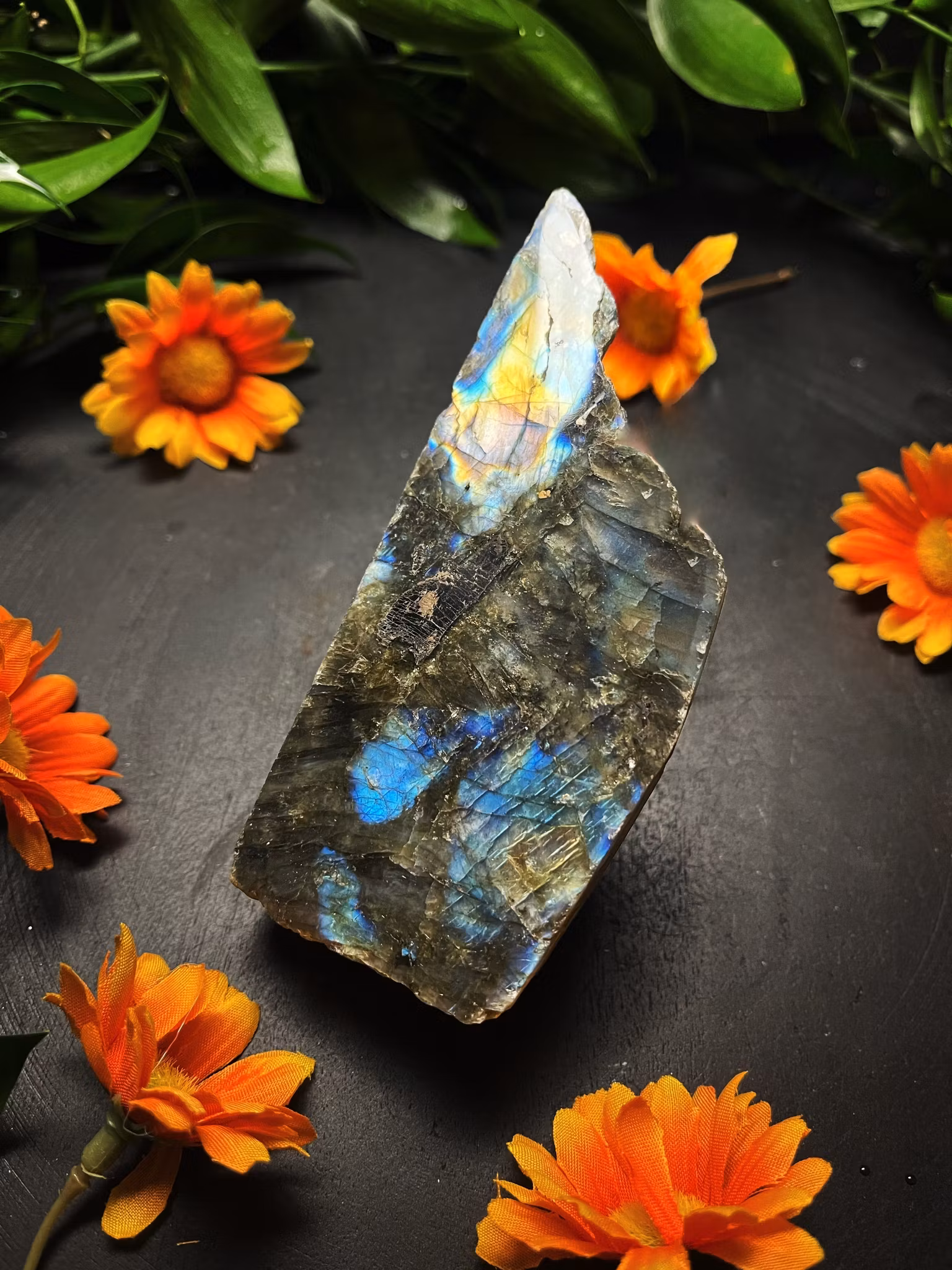 Labradorit är en kraftfull och mystisk kristall känd för sina förmågor att stärka intuitionen och skydda mot negativa energier. Den fungerar som en energimotor som hjälper till att öppna upp för andlig medvetenhet och guidning. Labradorit är särskilt användbar för att fördjupa meditation och förbättra drömmar, samt för att skydda individen från psykiska påfrestningar. Dess iridescerande färger reflekterar ett spektrum av energier och kan ge inre klarhet vid svåra beslut eller utmaningar.