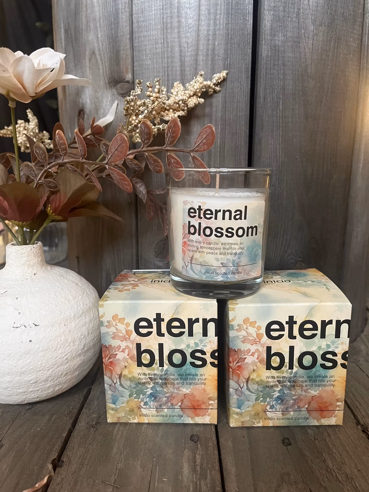 Fyll ditt hem med en tidlös och förtrollande doft med Eternal Blossom doftljus från Inicio. Den blommiga och mjukt kryddiga doften skapar en harmonisk atmosfär som passar lika bra för avkoppling som för festliga stunder.