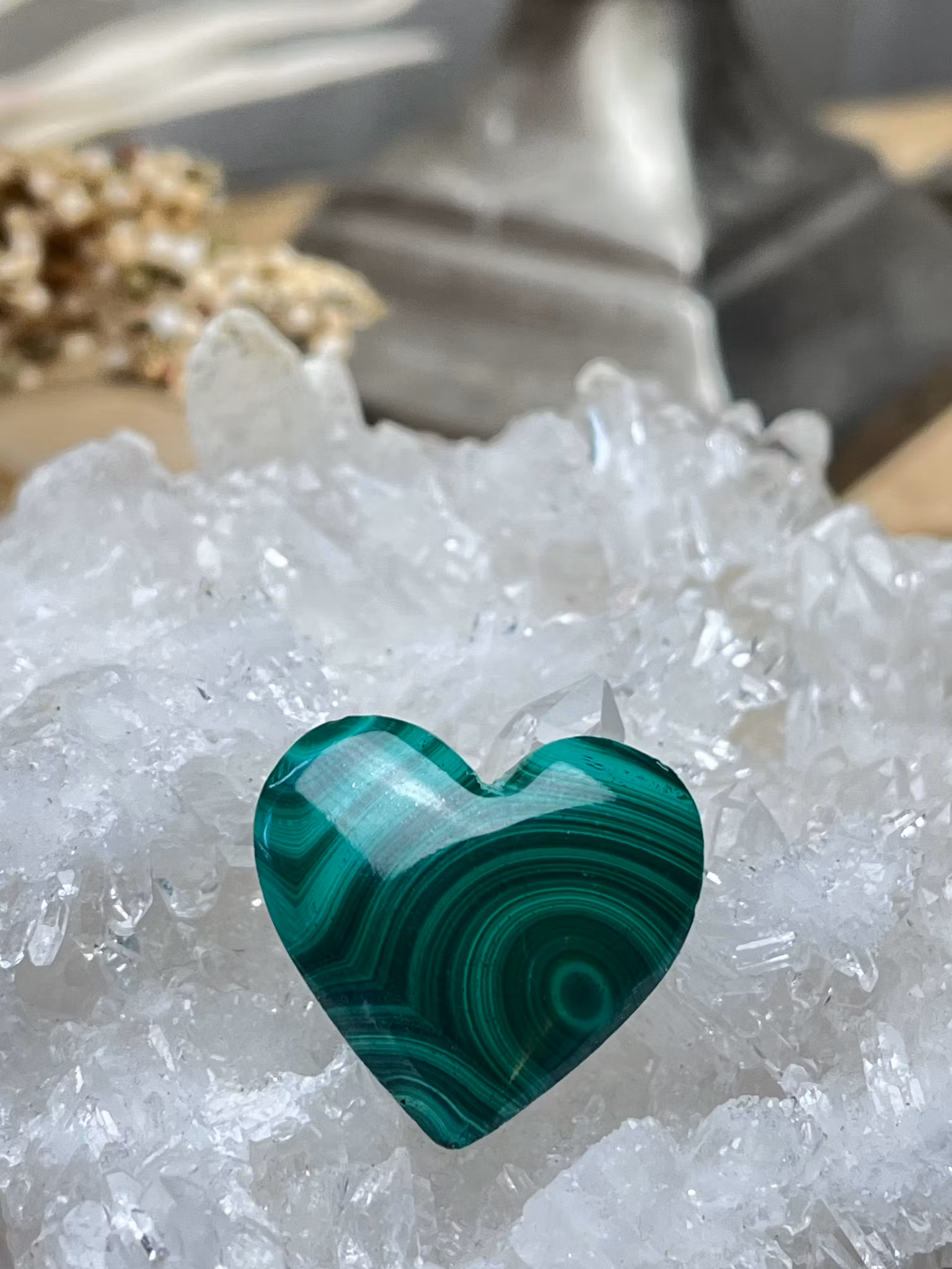 •Användning: Malakit används för att främja personlig transformation och emotionell läkning. Den är bra för att hjälpa till att bearbeta gamla sår och frigöra negativa känslomönster. Malakit anses vara en mycket skyddande sten, som hjälper till att avleda negativa energier och skyddar användaren från yttre påverkan. Den är även känd för att ha kraftfulla effekter på fysisk hälsa, särskilt när det gäller att lindra smärta och främja läkning i kroppen.