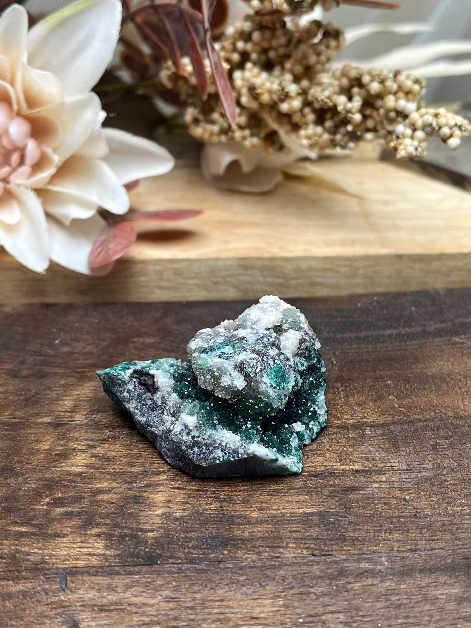 •Egenskaper: Malakit Kristallin är en kraftfull och transformerande sten som bär på intensiva energier för healing och skydd. Den kristallina formen av Malakit är särskilt effektiv för att stimulera djupgående emotionell och mental läkning. Malakit är känd för att absorbera negativa energier och strålar av renande energi, vilket gör den till en utmärkt sten för att skydda mot negativa influenser och främja positiv förändring. Dess intensiva gröna färg är starkt kopplad till hjärtchakrat, och den hjälper till att bearbeta och släppa blockeringar som kan hindra kärlek och inre harmoni.