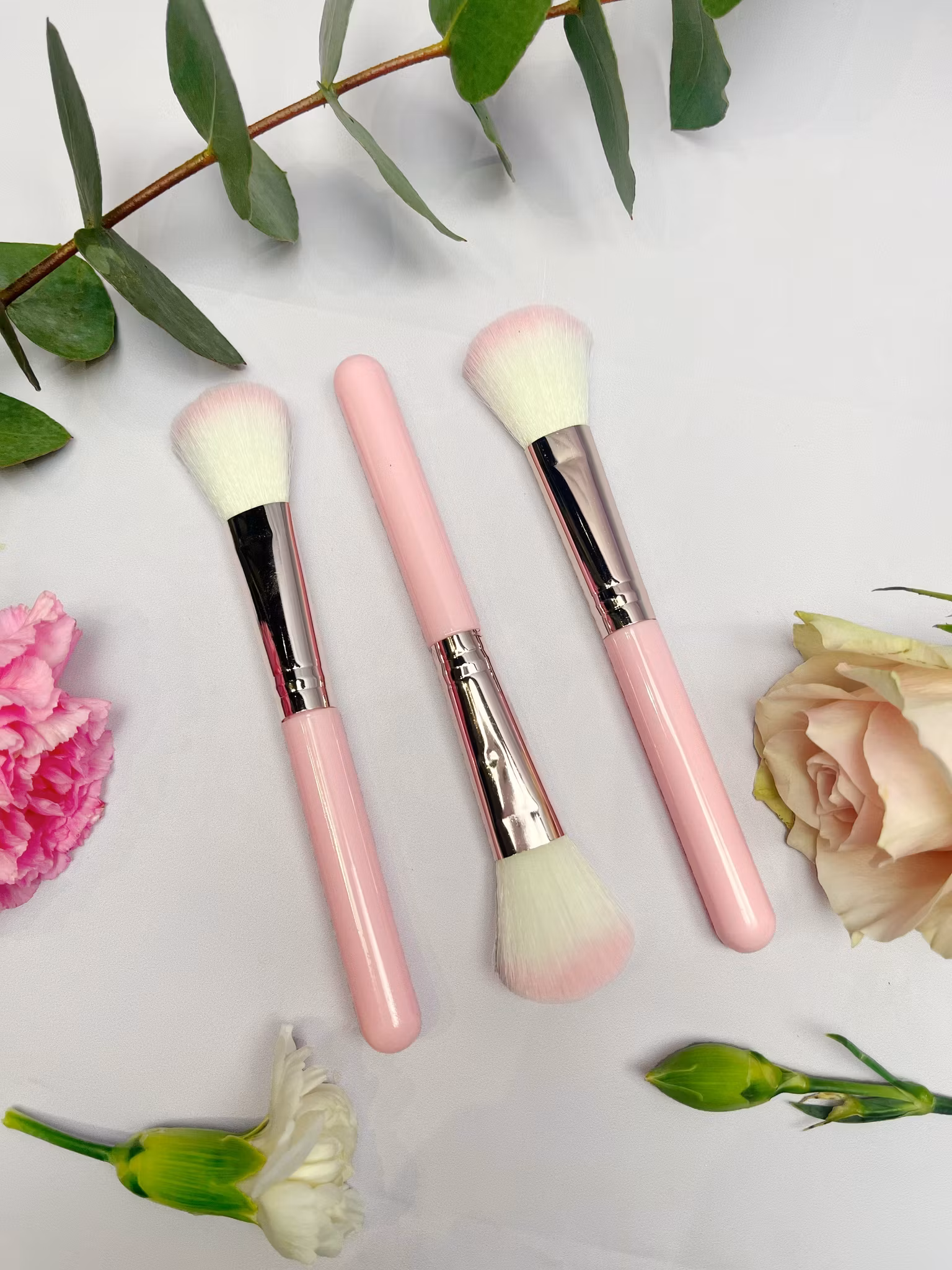 1️⃣ Doppa borsten lätt i puder eller rouge och borsta bort överskottet.