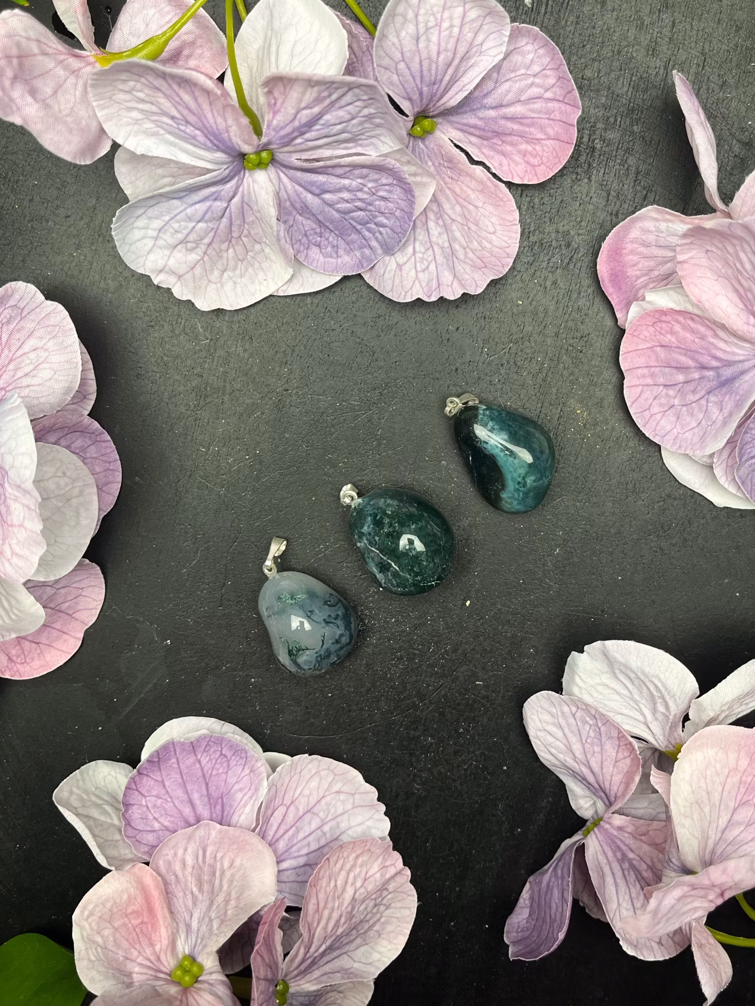 Moss Agat grundar, balanserar och stabiliserar. Ökar överflöd och stimulerar kreativiteten. En mycket andlig sten, lugnar sinnet och hjälper dig tänka klart.