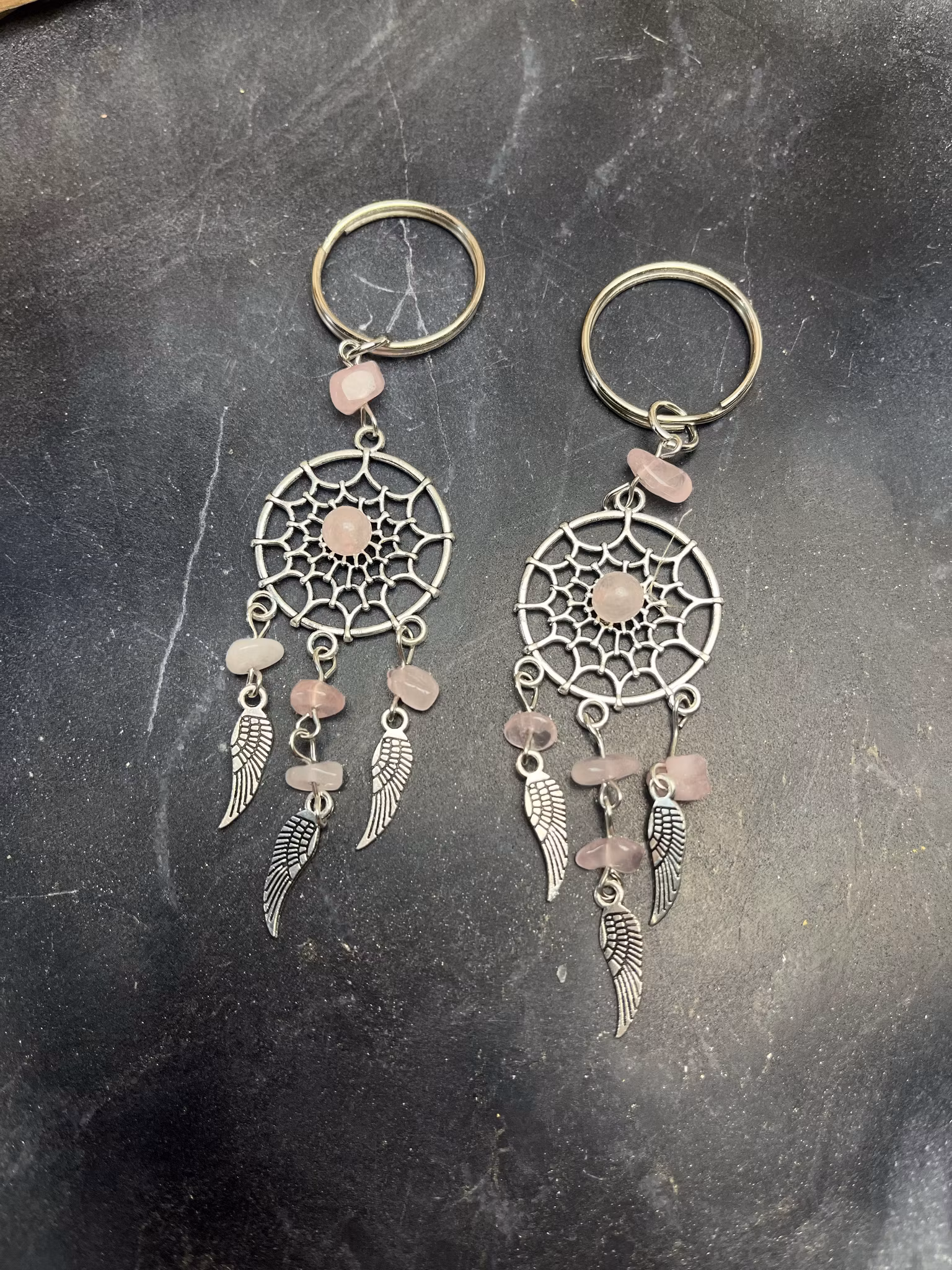 Zinklegering och rosenkvarts Nuggets i en superfin nyckelring.