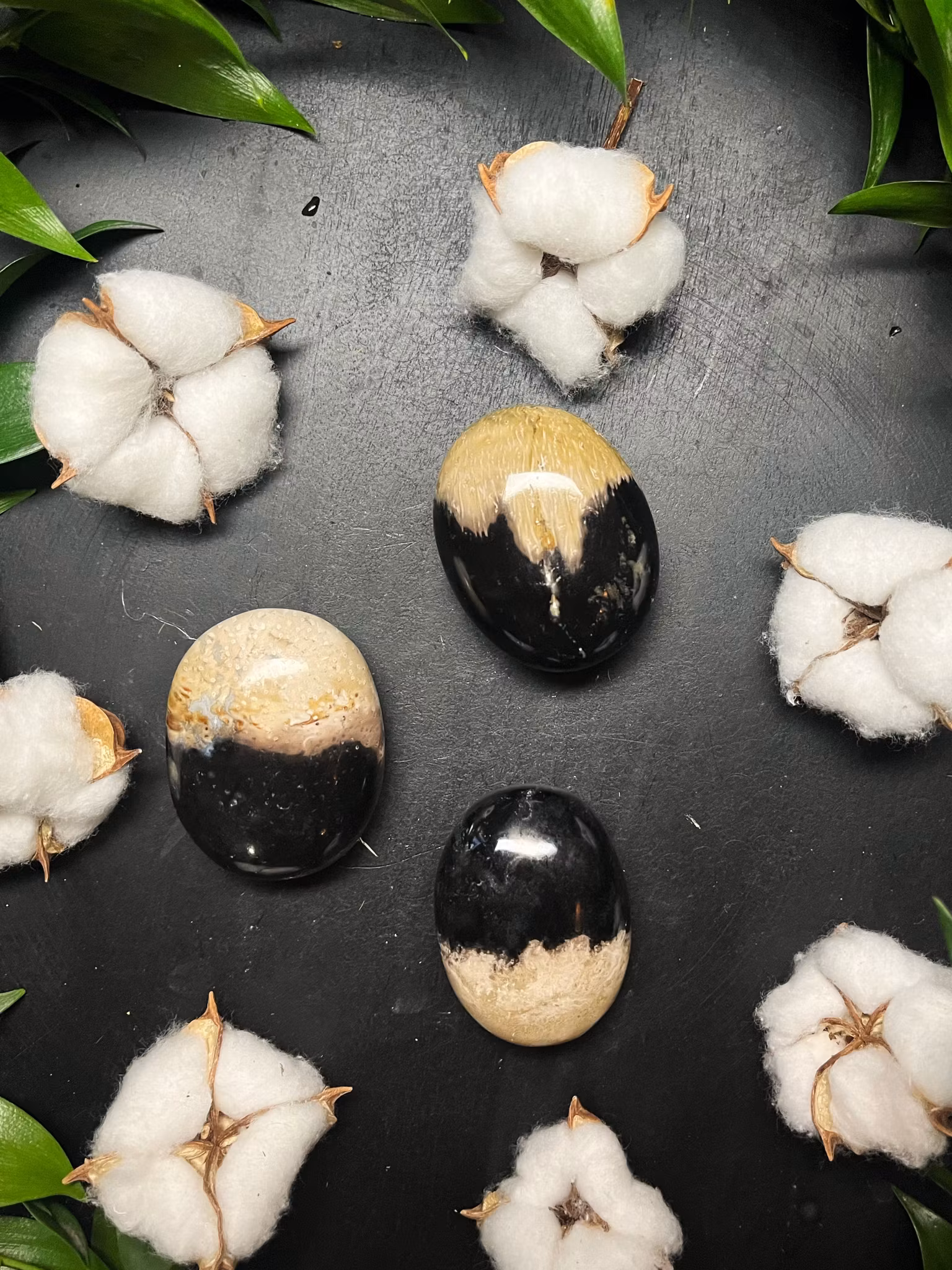 Palmrot är en utmärkt grundsten eftersom den hjälper till att lösa upp rädsla och rensa förvirring av nuvarande livssituationer. Släpp negativa beteenden och lindrar känslor av depression eller ångest. Ger fysiskt och energiskt skydd. Balanserar och lugnar känslor. Kan hjälpa till att utöka positiva övertygelser för att lyfta ens sinne och kropp. Vitaliserar ens livskraft eller chi-energi.