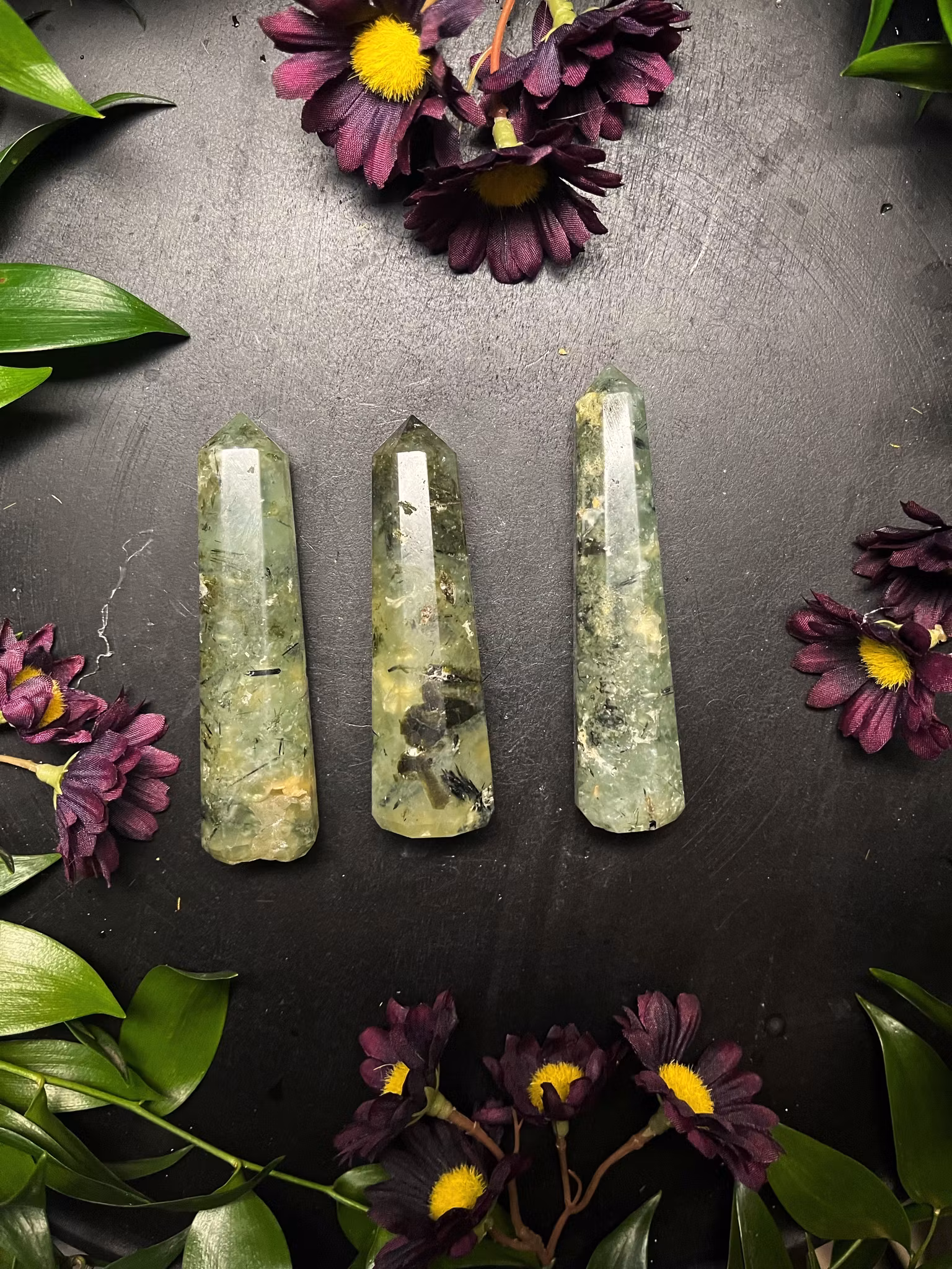 Prehnit lyfter profetiska förmågor och är en bra sten när man arbetar med tarot, eller läsningar eller kristall kulor. Prehnit förbättrar visualiseringen och det mediala vetandet och kontakten med de högre sfären.