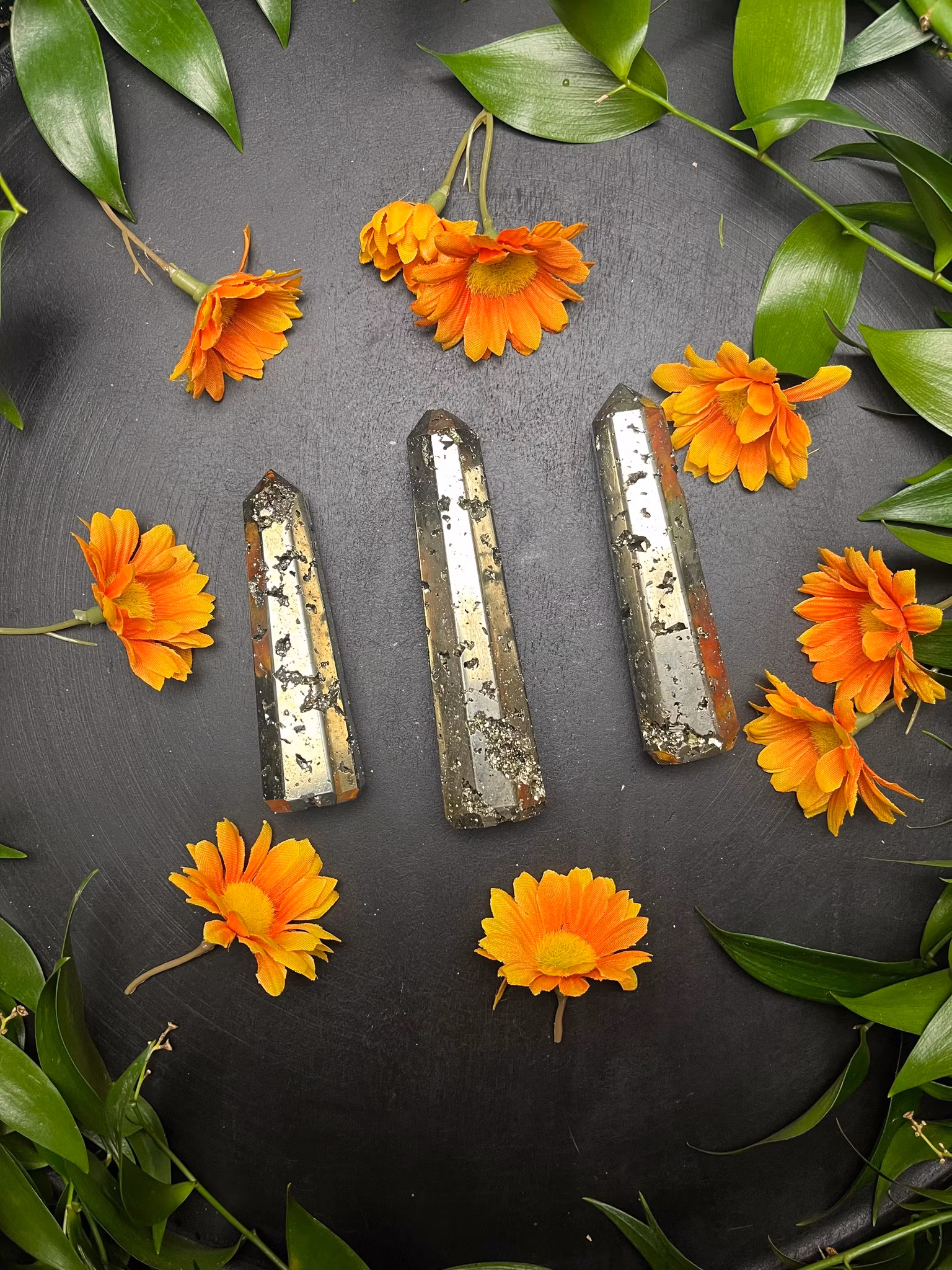 Pyrit, polerade torn druzy obelisk