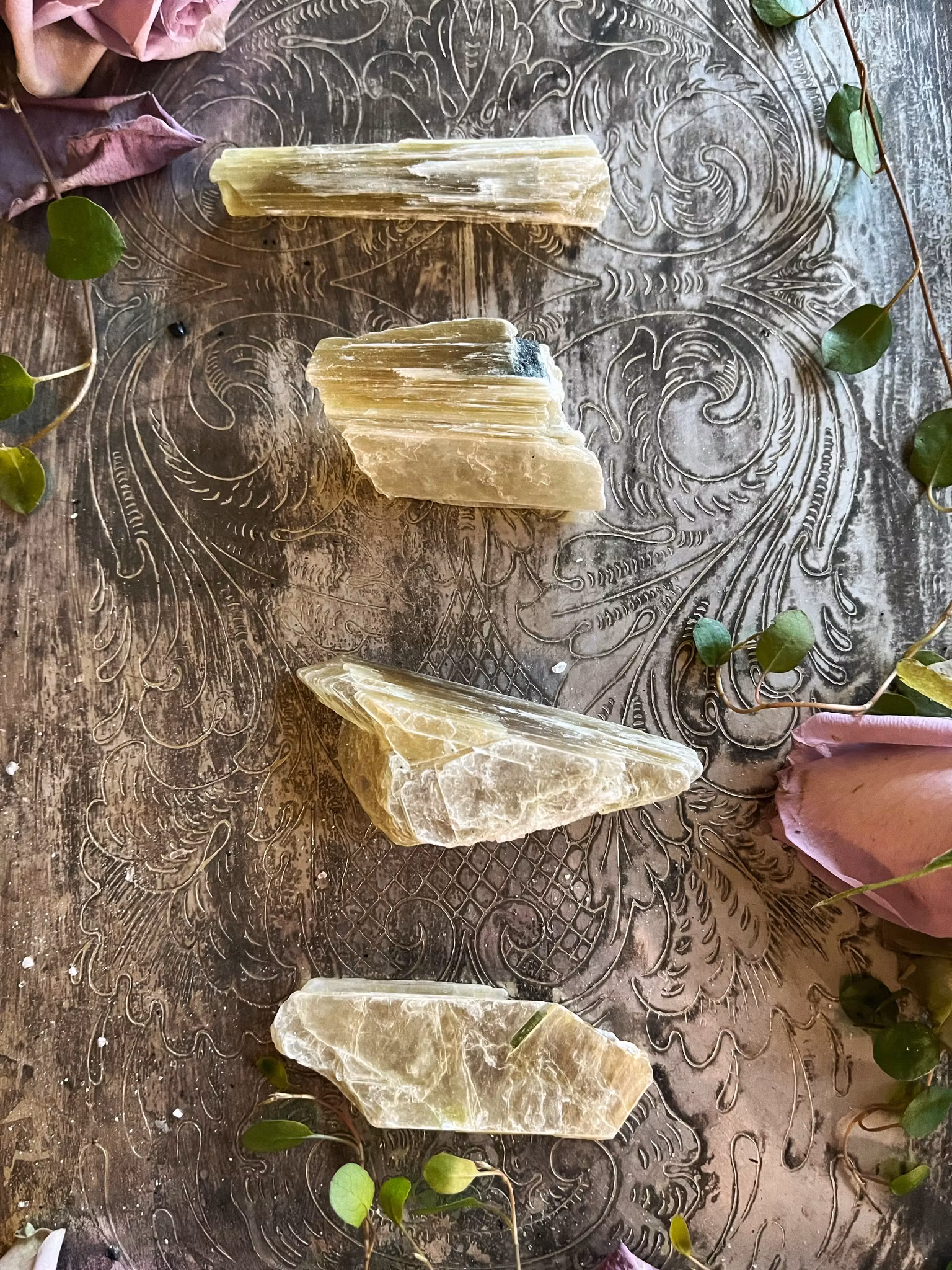 Muskovit är en medlem i glimmerfamiljen av mineraler. Den växer i stora, bladlika kristaller som ligger ihop. Starkt beskyddande, muskovit hjälper dig att leva i nuet, ta lärdom av det förgångna och hjälper dig framåt. En mindful sten.