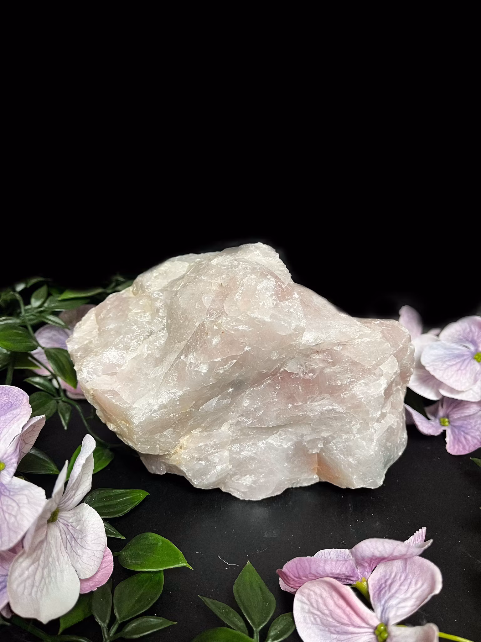 •Egenskaper: Rosenkvarts är en av de mest kända kristallerna för kärlek och emotionell helande. Den har en mjuk, rosa färg som representerar villkorslös kärlek, vänlighet och medkänsla. Rosenkvarts anses vara “kärlekens sten” och är perfekt för att öppna upp hjärtat och hela gamla känslomässiga sår. Den hjälper till att släppa negativa känslomönster, särskilt de som är kopplade till självkritik, sorg och brist på självkärlek. Rosenkvarts främjar även fred och harmoni i relationer och hjälper till att skapa en positiv energi kring dig. Den är också en sten för självacceptans och för att läka känslomässig smärta, vilket gör den idealisk vid personliga utmaningar och vid behov av förlåtelse, både gentemot andra och dig själv.