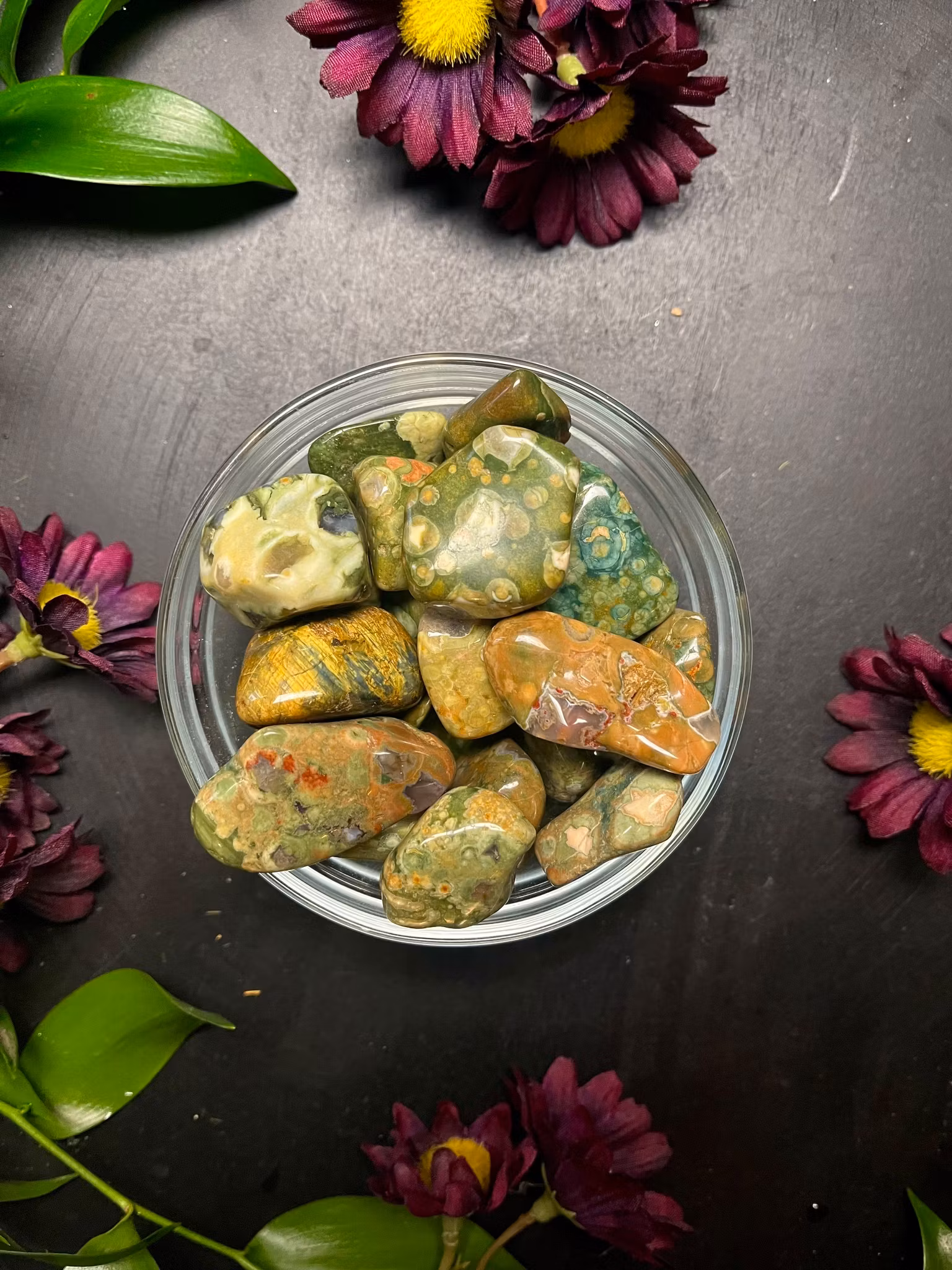 Rhyolit är en kraftfull kristall för förnyelse och självläkning. Den är känd för att stödja personlig utveckling och hjälpa till att frigöra gamla, negativa mönster och känslomässiga blockeringar. Rhyolit främjar både fysisk och emotionell helande genom att stimulera energi och livskraft. Den har en stark förmåga att öppna upp hjärtat och hjälpa till att släppa känslomässiga trauman, vilket gör det lättare att gå vidare och förlåta sig själv och andra. Rhyolit är också bra för att skapa balans mellan kropp och sinne, vilket gör den till en utmärkt sten för att hantera stress och känslomässig obalans.