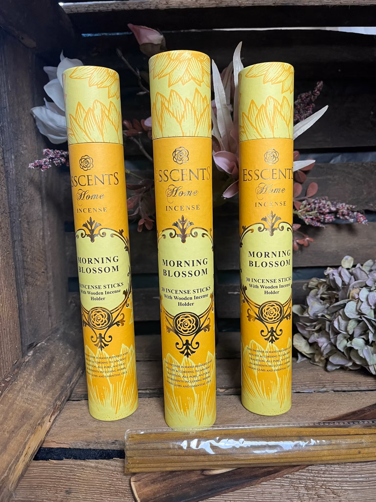 30 rökelsepinnar med tillhörande rökelsehållare i varje ask