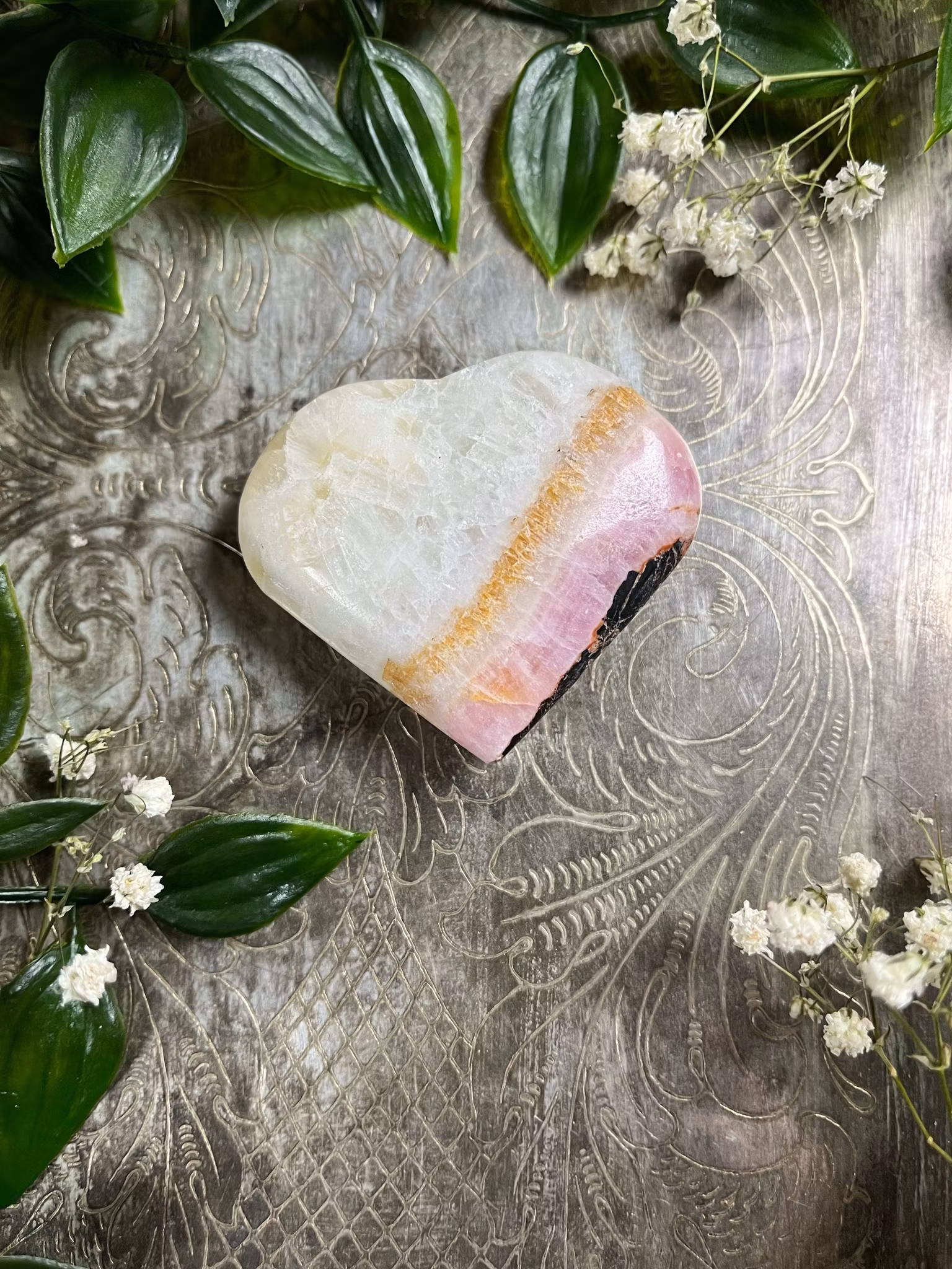 Rosa Aragonit har en stark kraft för att läka hjärtat. Den hjälper oss även att ha tålamod med processen för att läka.