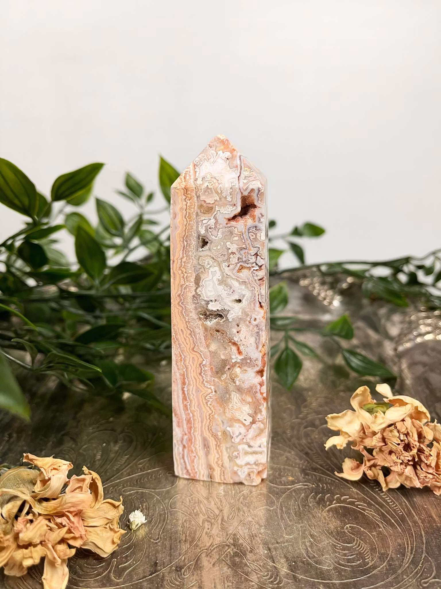 crazy lace agat är beskyddande och lugnande samt stärker ditt självförtroende. Crazy lace absorberar känslomässig smärta, stärker dig att känna de rätta besluten och uppmuntrar tydligt beslutsfattande.