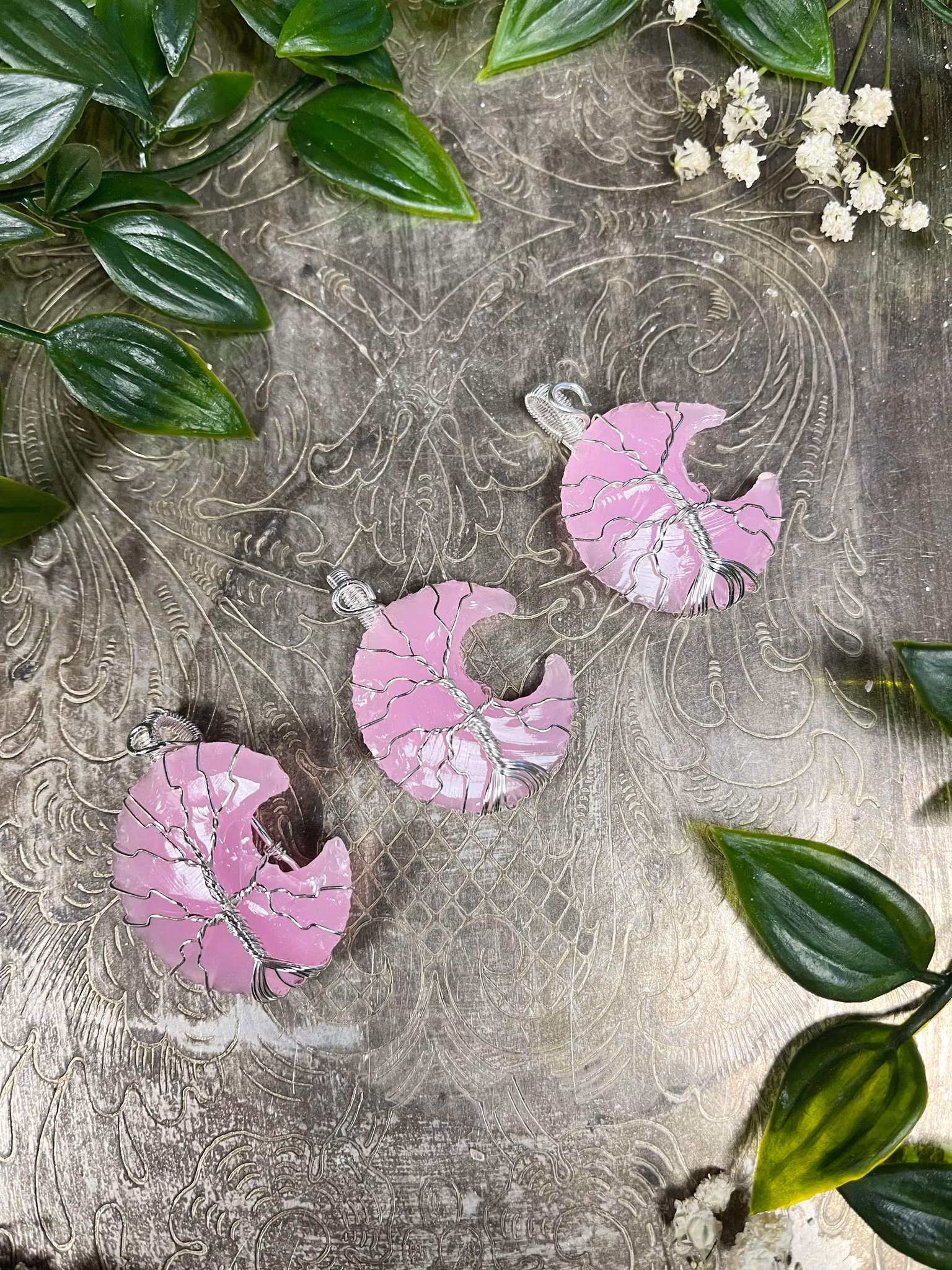Rosenkvarts hänge måne solverpläterad