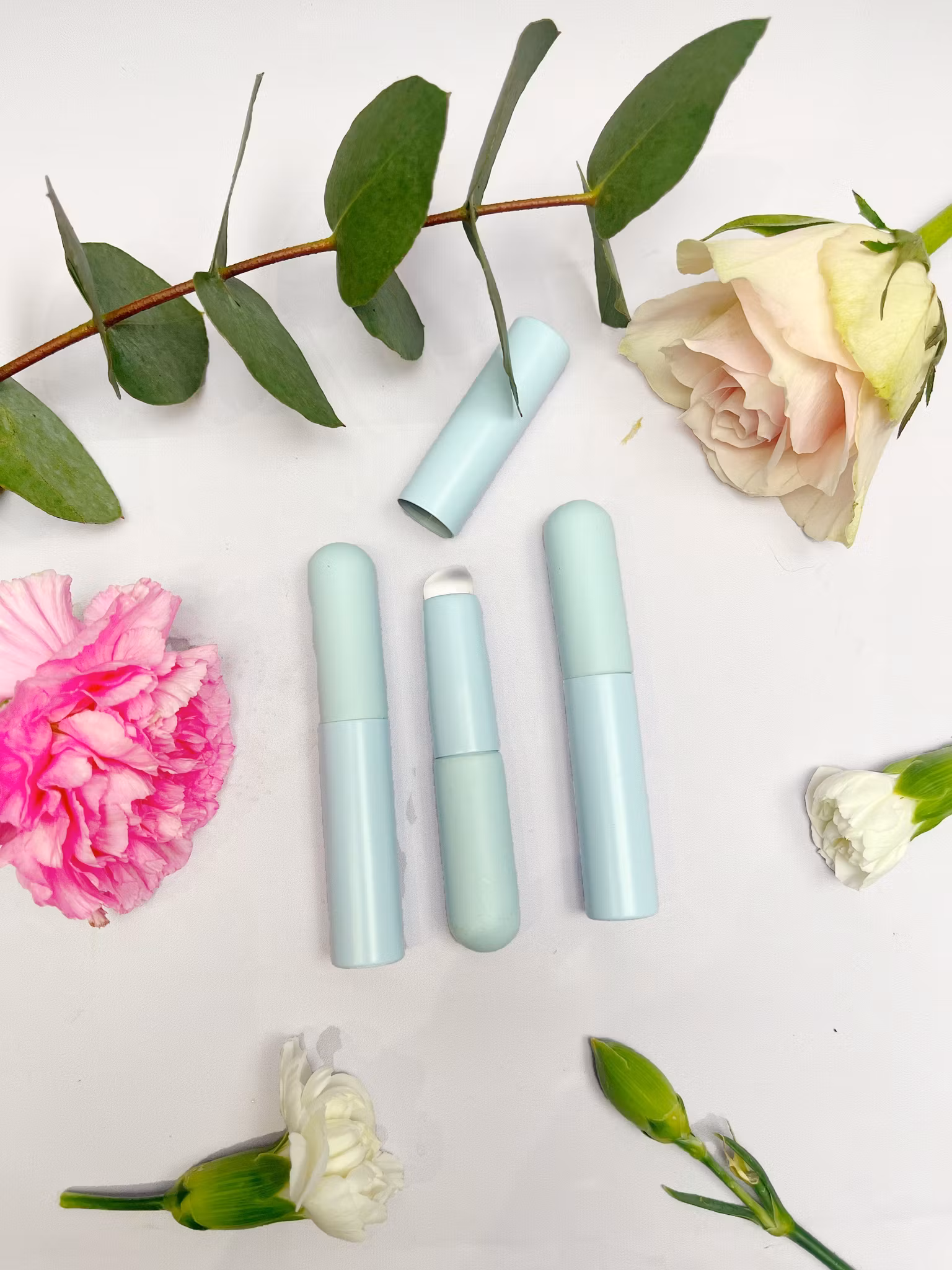 1️⃣ Doppa applikatorn lätt i concealer, läppbalsam eller önskad sminkprodukt.