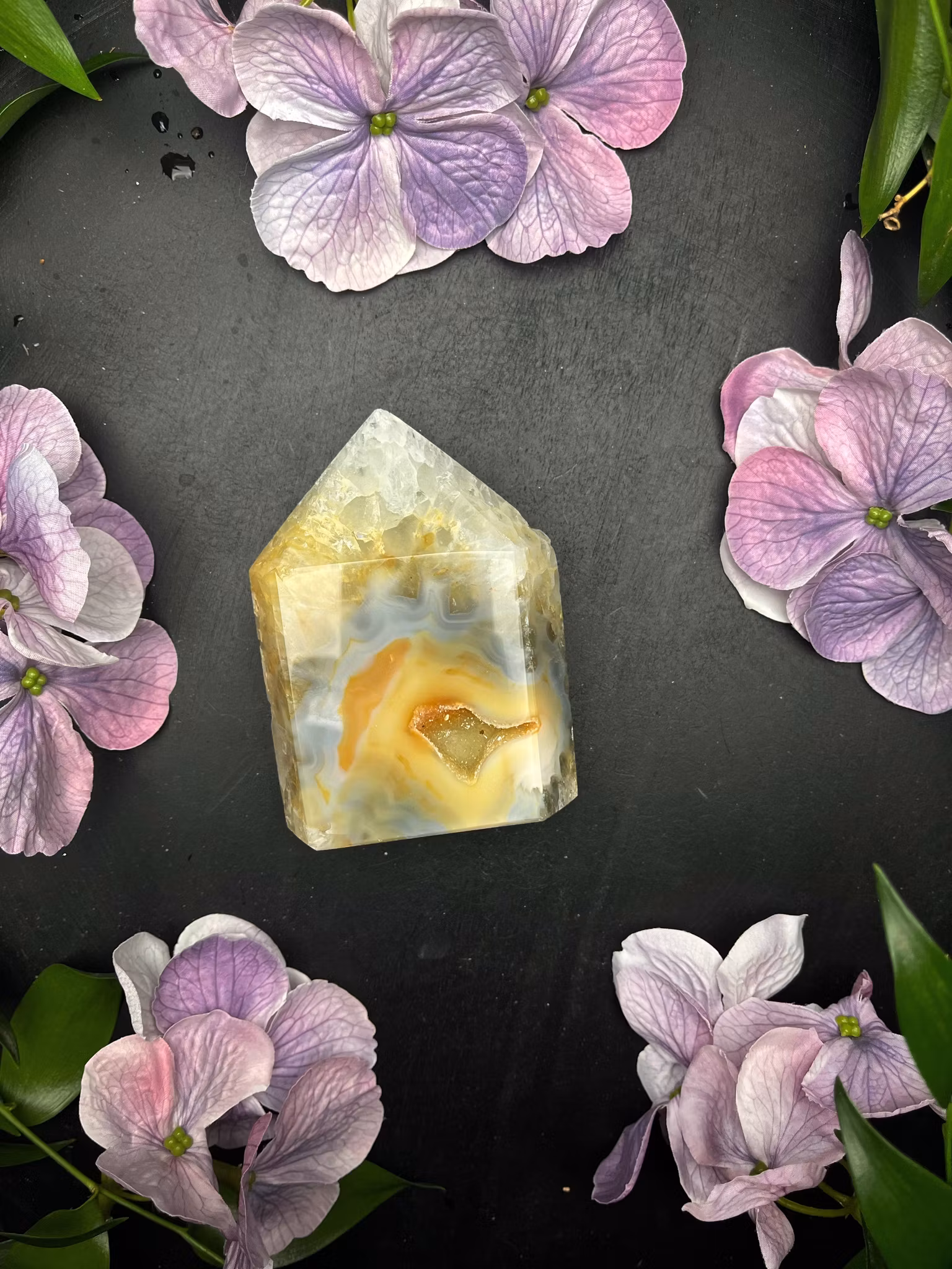 Termen "Druzy" hänvisas till den lilla, glittrande kristallstrukturen som bildas på värdstenens yta. En druzy sten är riktigt bra för sin förmåga att lindra stress, få lugn och stärka immunförsvaret i vår kropp. Det främjar ett hälsosamt känslomässigt band och fysisk styrka med oss.