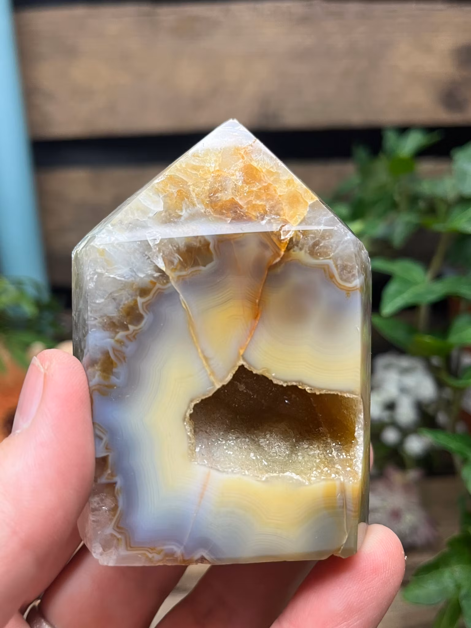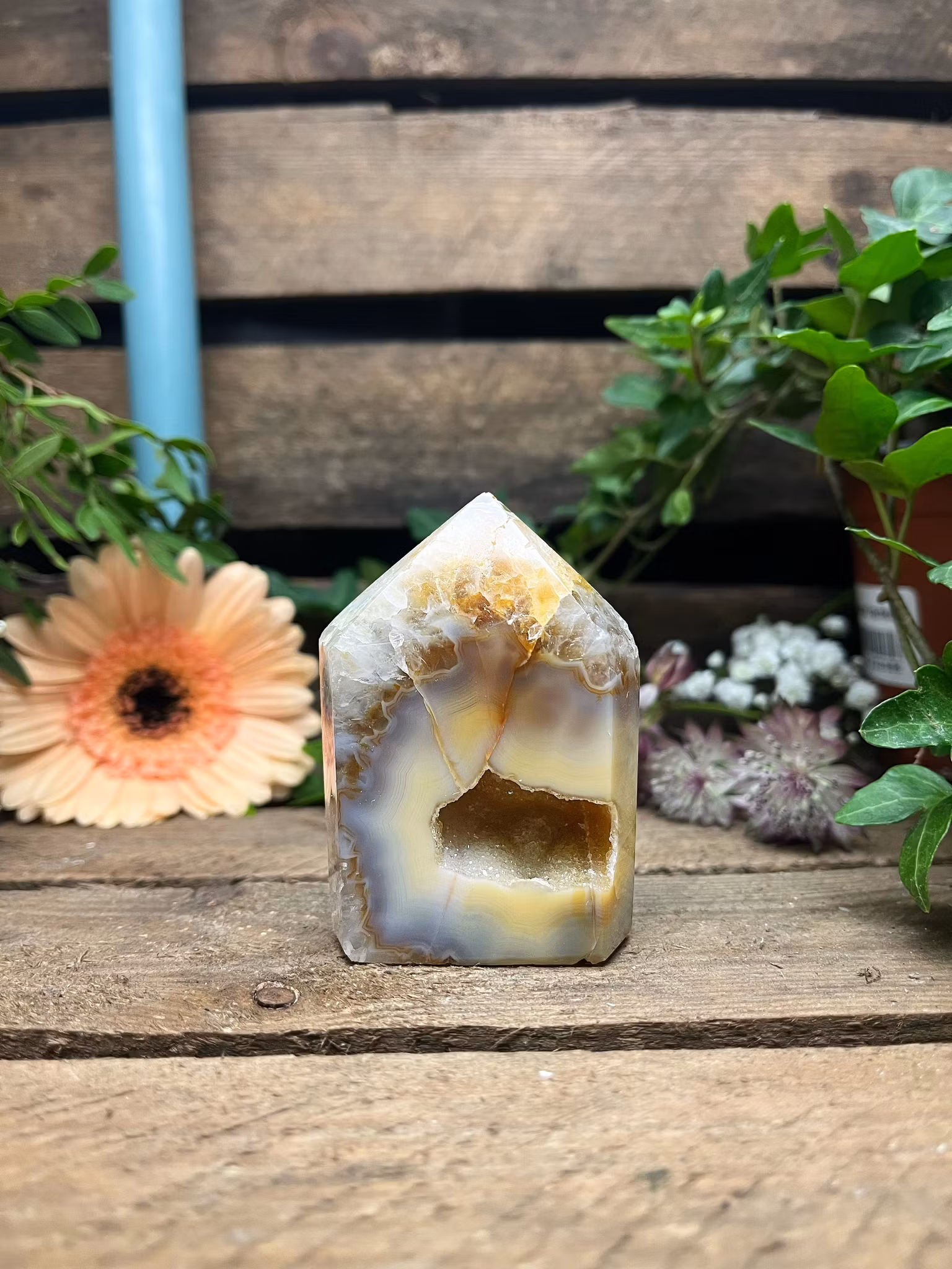 Agat, Polerad naturlig Spets med Druze #C