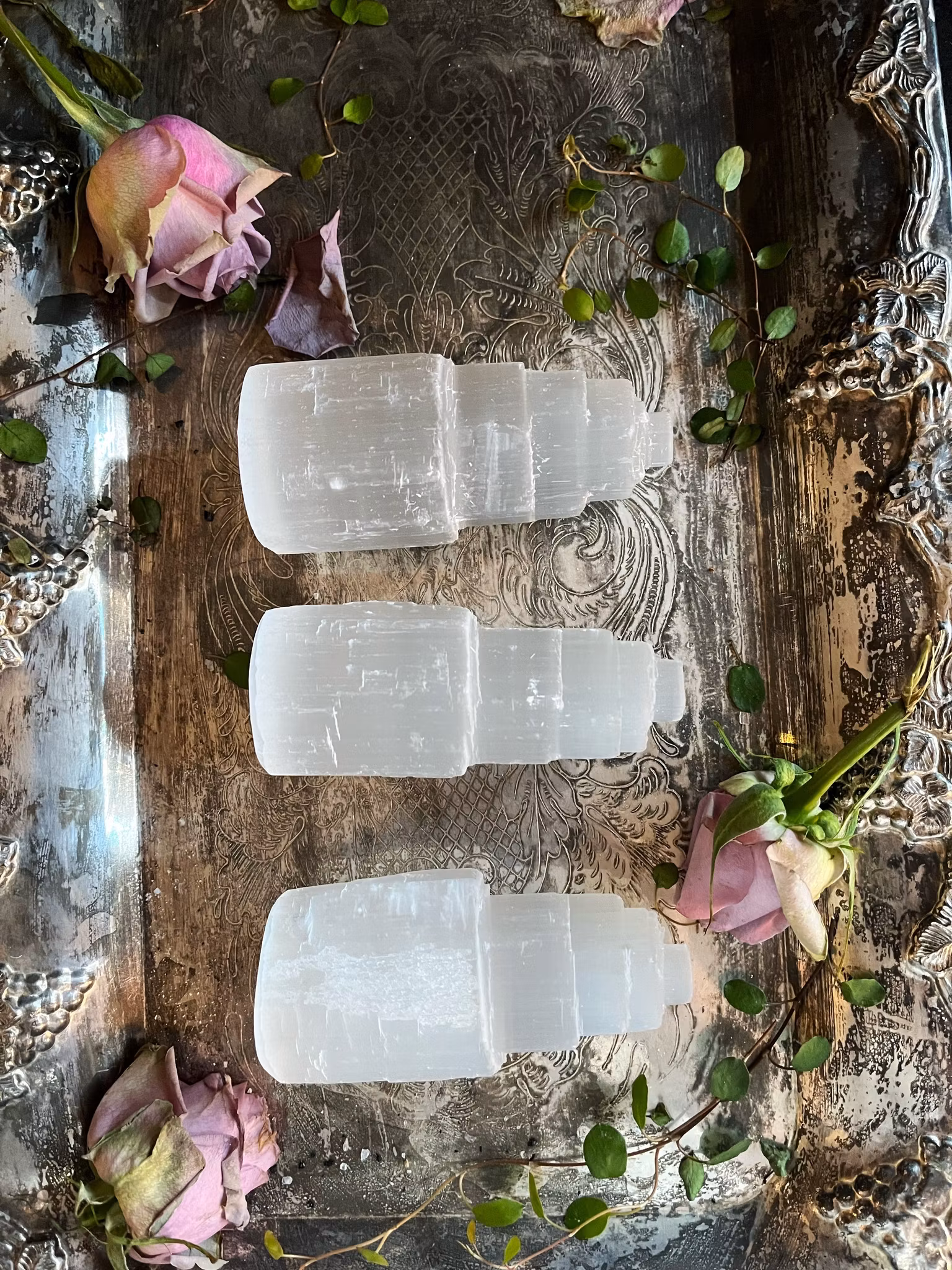 Lugnande och mild, för in ett djupt lugn och en känsla av rofylldhet. Använd Selenit som en grid runt ditt hem eller i hörnen för att hålla det säkert.