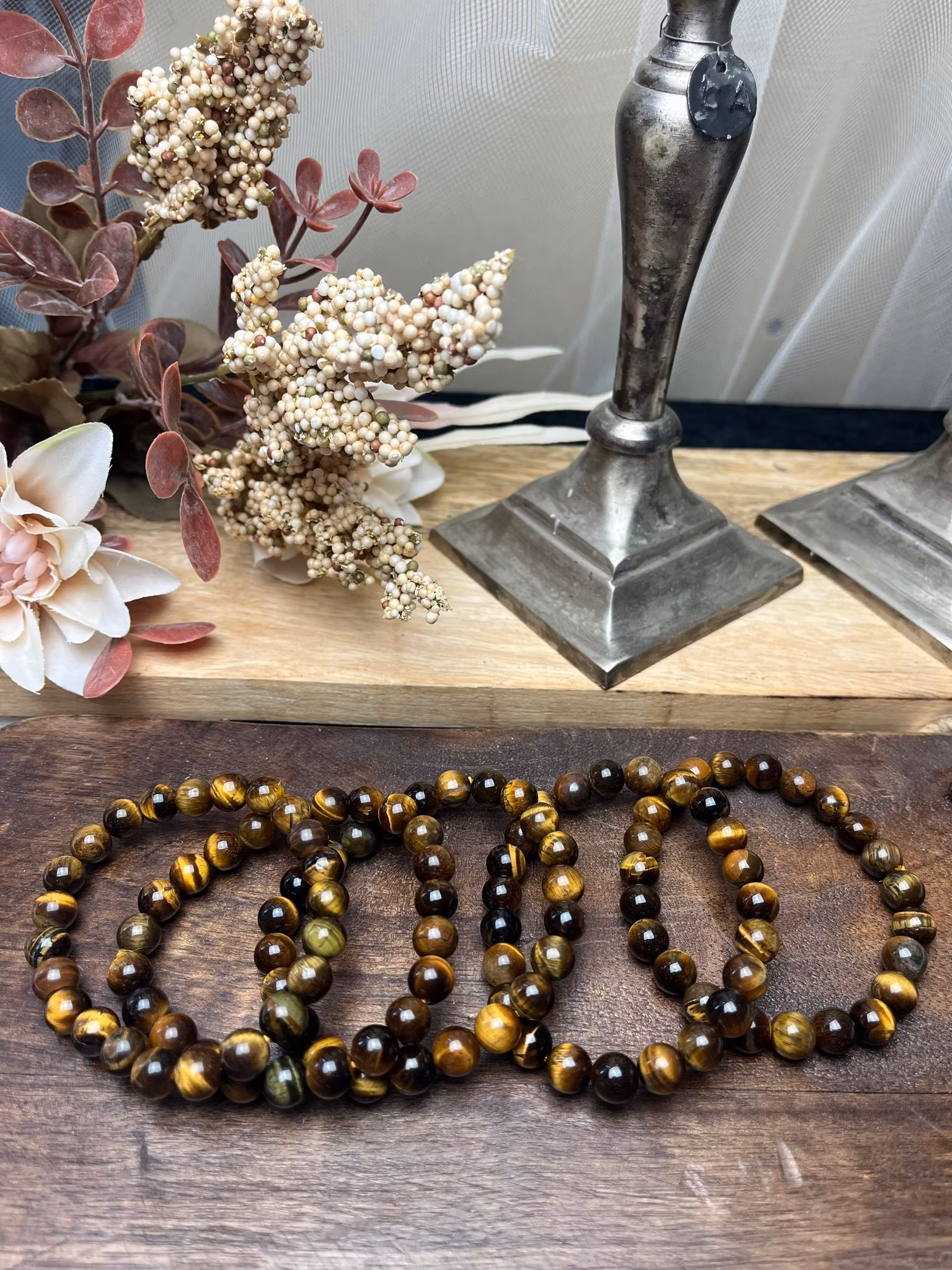 •Egenskaper: Tigeröga är en kraftfull kristall som kombinerar den varma energin från guld och brunt med en unik ränder av svart och gul. Den är en sten som står för mod, självsäkerhet och skydd. Tigeröga är känd för att balansera och harmonisera både kropp och sinne, vilket gör det till en utmärkt sten för att få klarhet och fatta beslut. Den hjälper till att stärka personligt självförtroende och ger mod att ta risker när det behövs. Tigeröga är också en beskyddande sten som sägs avvärja negativa energier och ge skydd vid fysisk och mental utmaning.