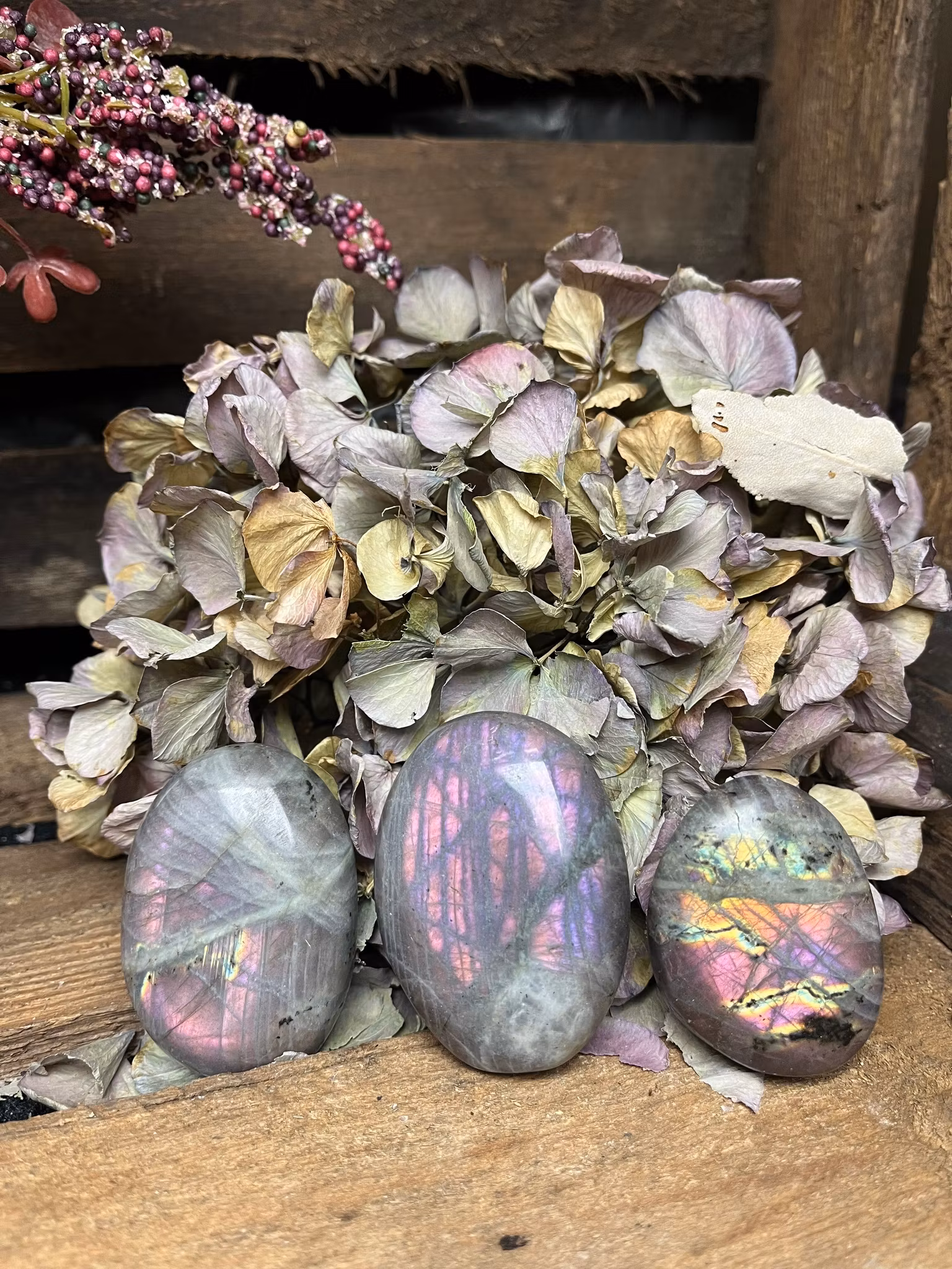 Lila Labradorit är en ovanlig och kraftfull kristall som kombinerar labradoritens skyddande och intuition stärkande egenskaper med lila energi som öppnar upp för högre medvetande och andlig insikt. Denna kristall hjälper till att fördjupa den inre visdomen och förfina intuitiva förmågor. Lila Labradorit stärker kopplingen till det andliga självet och förbättrar förmågan att lyssna på inre vägledning. Den är även känd för sina skyddande egenskaper, och den skyddar mot negativ energi samtidigt som den skapar en stabil, skyddad aura omkring dig.