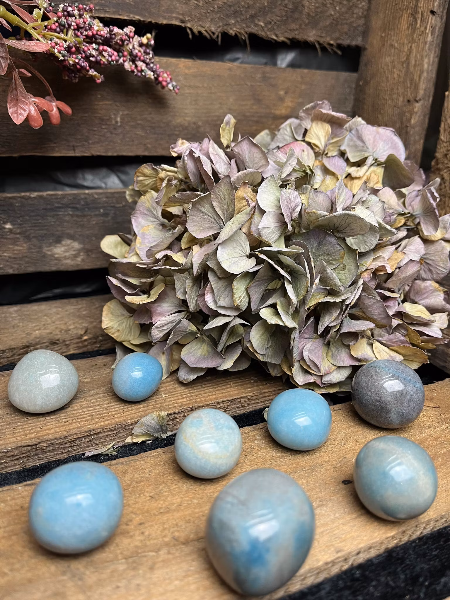 Fina polerade stenar i rundad form. Stenarna har variterande naturliga mönster, färger och toner, samt kan variera något i form och storlek.