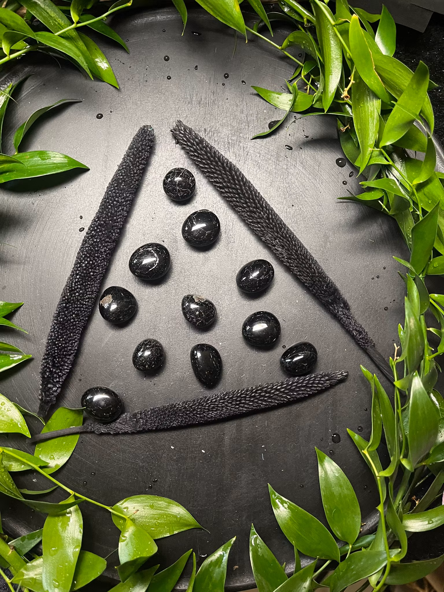 Svart turmalin är en av de mest kraftfulla skyddande kristallerna. Den är känd för sin förmåga att absorbera och neutralisera negativa energier och elektromagnetisk strålning, vilket gör den idealisk för att skydda både fysiska och energetiska fält. Svart turmalin hjälper till att skapa en stabil och jordad energi, vilket gör den särskilt användbar när du känner dig stressad eller obalanserad. Dess energi främjar också inre styrka och hjälper till att skapa en känsla av säkerhet och trygghet.
