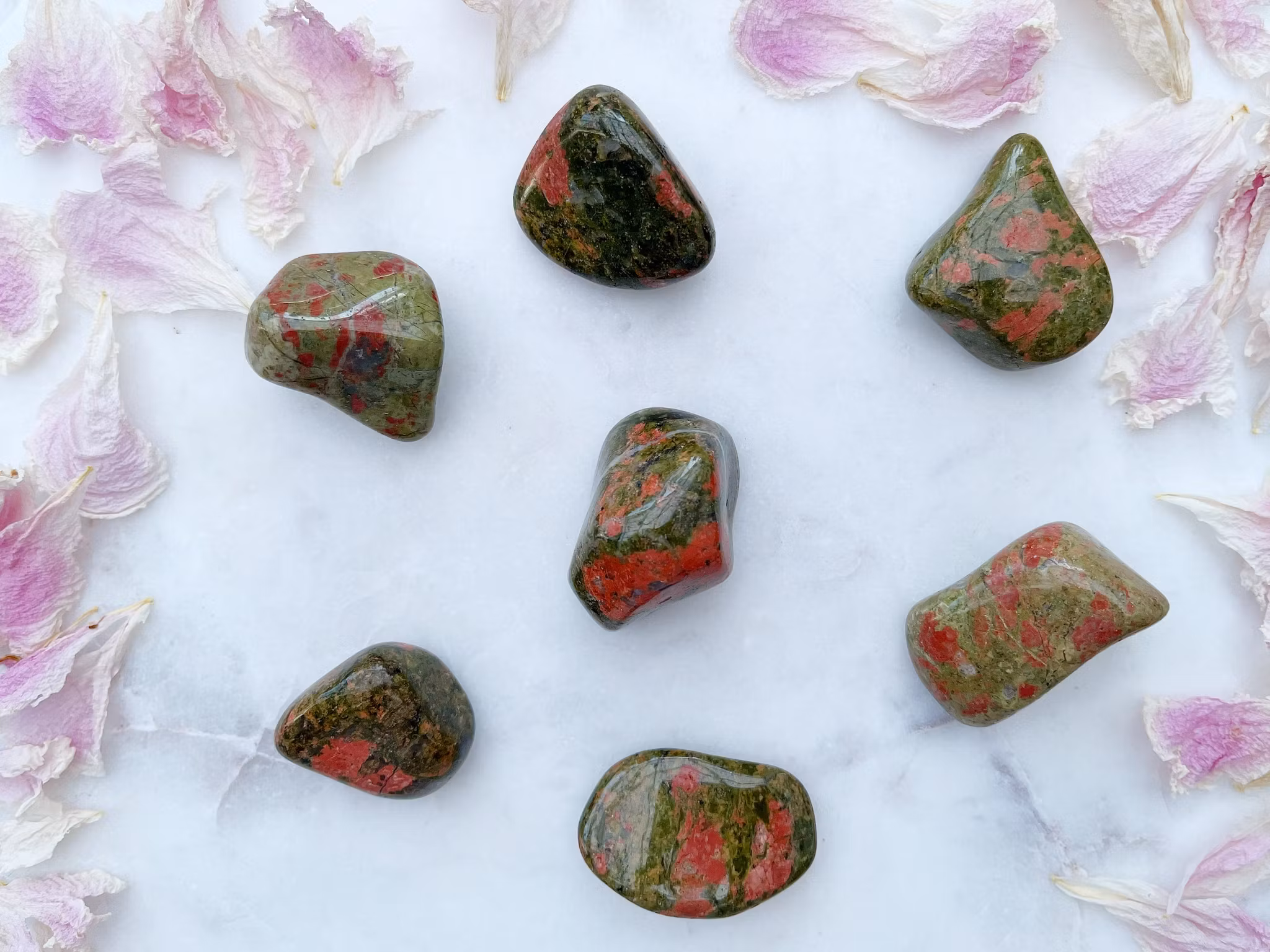 Unakit balanserar den känslomässiga och andliga kroppen, och hjälper/befriar den från energimässiga blockeringar. Den hjälper oss att leva i nuet och släppa det förgångna, dvs de känslor och minnen du vill bli av med.