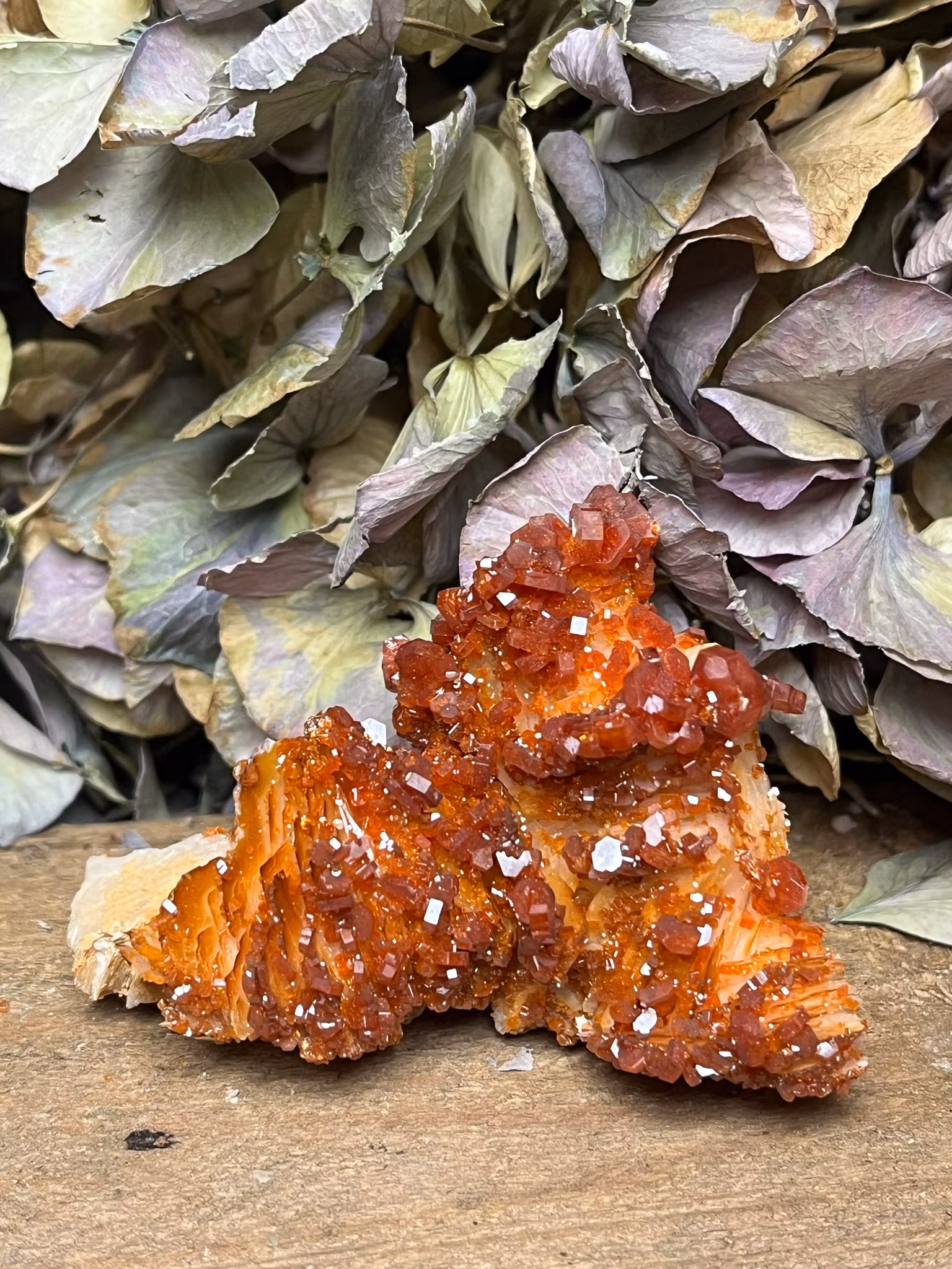 Vanadinit är en kraftfull kristall som stimulerar både fysisk och mental energi. Den hjälper till att främja transformation och personlig tillväxt genom att rensa bort gamla energier och skapa plats för nya. Vanadinit är känd för att öka vitaliteten och främja högre medvetenhet. Den stärker också din vilja och beslutsamhet, vilket gör det lättare att fatta beslut och genomföra planer. Kristallen främjar kreativitet och fokus, och hjälper till att manifestera önskningar och mål genom att frigöra blockeringar och negativa tankemönster.