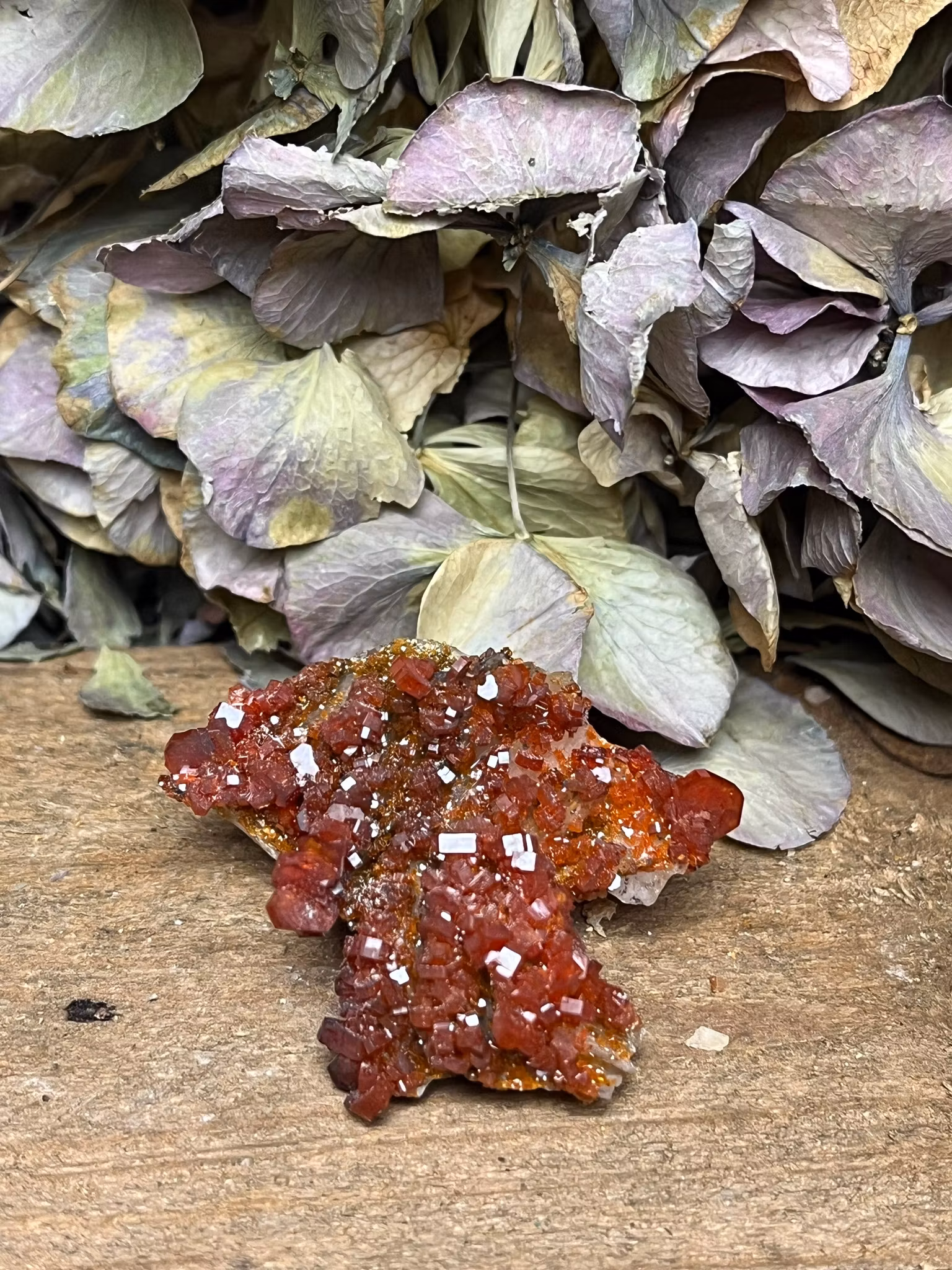 Vanadinit är en kraftfull kristall som stimulerar både fysisk och mental energi. Den hjälper till att främja transformation och personlig tillväxt genom att rensa bort gamla energier och skapa plats för nya. Vanadinit är känd för att öka vitaliteten och främja högre medvetenhet. Den stärker också din vilja och beslutsamhet, vilket gör det lättare att fatta beslut och genomföra planer. Kristallen främjar kreativitet och fokus, och hjälper till att manifestera önskningar och mål genom att frigöra blockeringar och negativa tankemönster.
