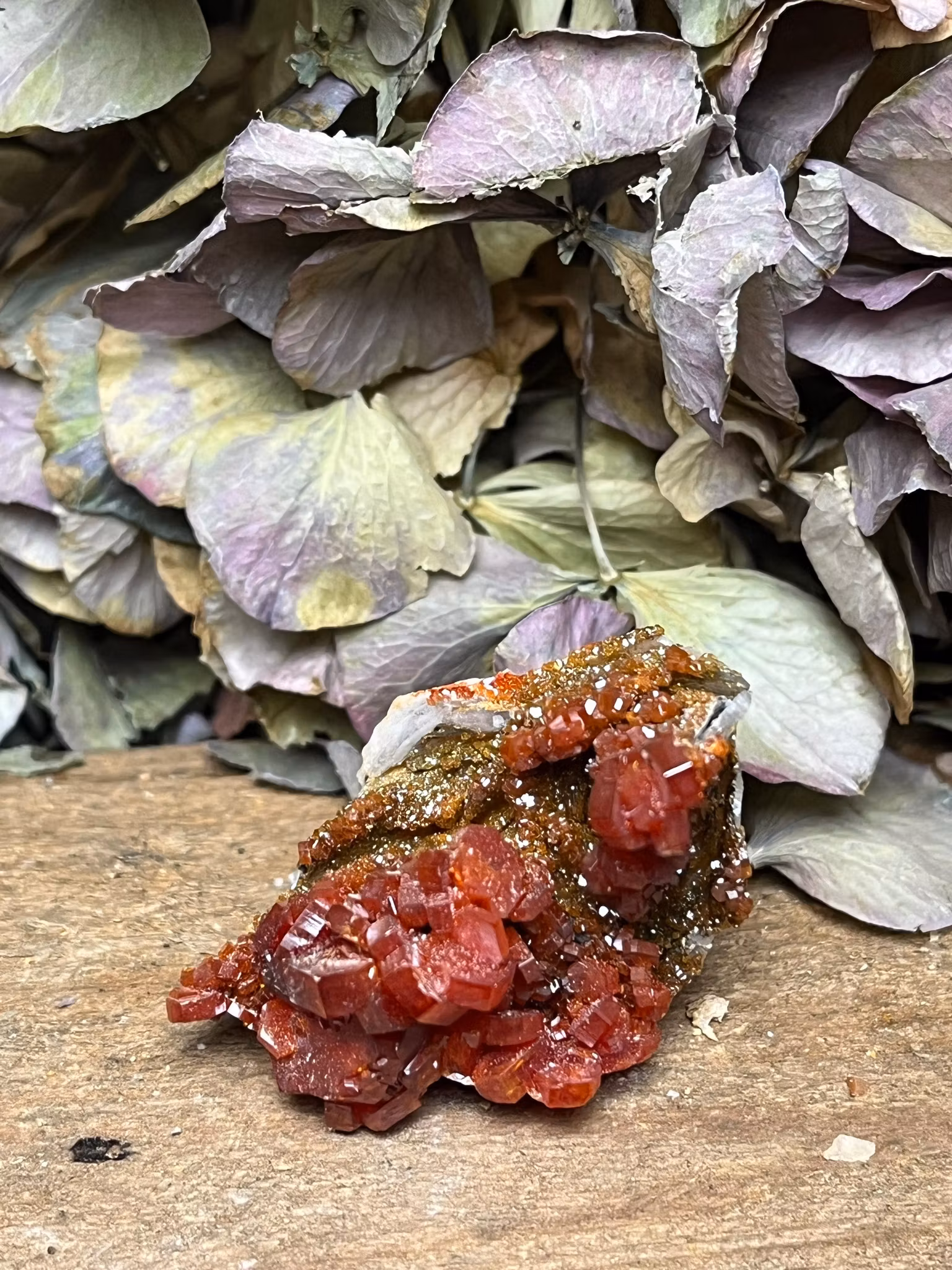 Vanadinit är en kraftfull kristall som stimulerar både fysisk och mental energi. Den hjälper till att främja transformation och personlig tillväxt genom att rensa bort gamla energier och skapa plats för nya. Vanadinit är känd för att öka vitaliteten och främja högre medvetenhet. Den stärker också din vilja och beslutsamhet, vilket gör det lättare att fatta beslut och genomföra planer. Kristallen främjar kreativitet och fokus, och hjälper till att manifestera önskningar och mål genom att frigöra blockeringar och negativa tankemönster.