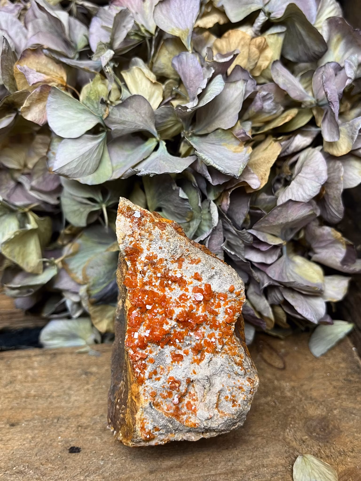 Vanadinit är en kristall med mycket hög energi och en kraftfull förmåga att stimulera kreativitet och intellektuell klarhet. Den hjälper till att sätta fart på projekten genom att öka motivationen och beslutskraften, vilket gör den perfekt för dem som vill ta sina idéer från tanke till handling. Vanadinit hjälper till att rensa mentala blockeringar och ge energi till både fysiska och mentala aktiviteter. Dess förmåga att stimulera kreativt flöde och problemlösning gör den till en utmärkt sten för konstnärer och entreprenörer.