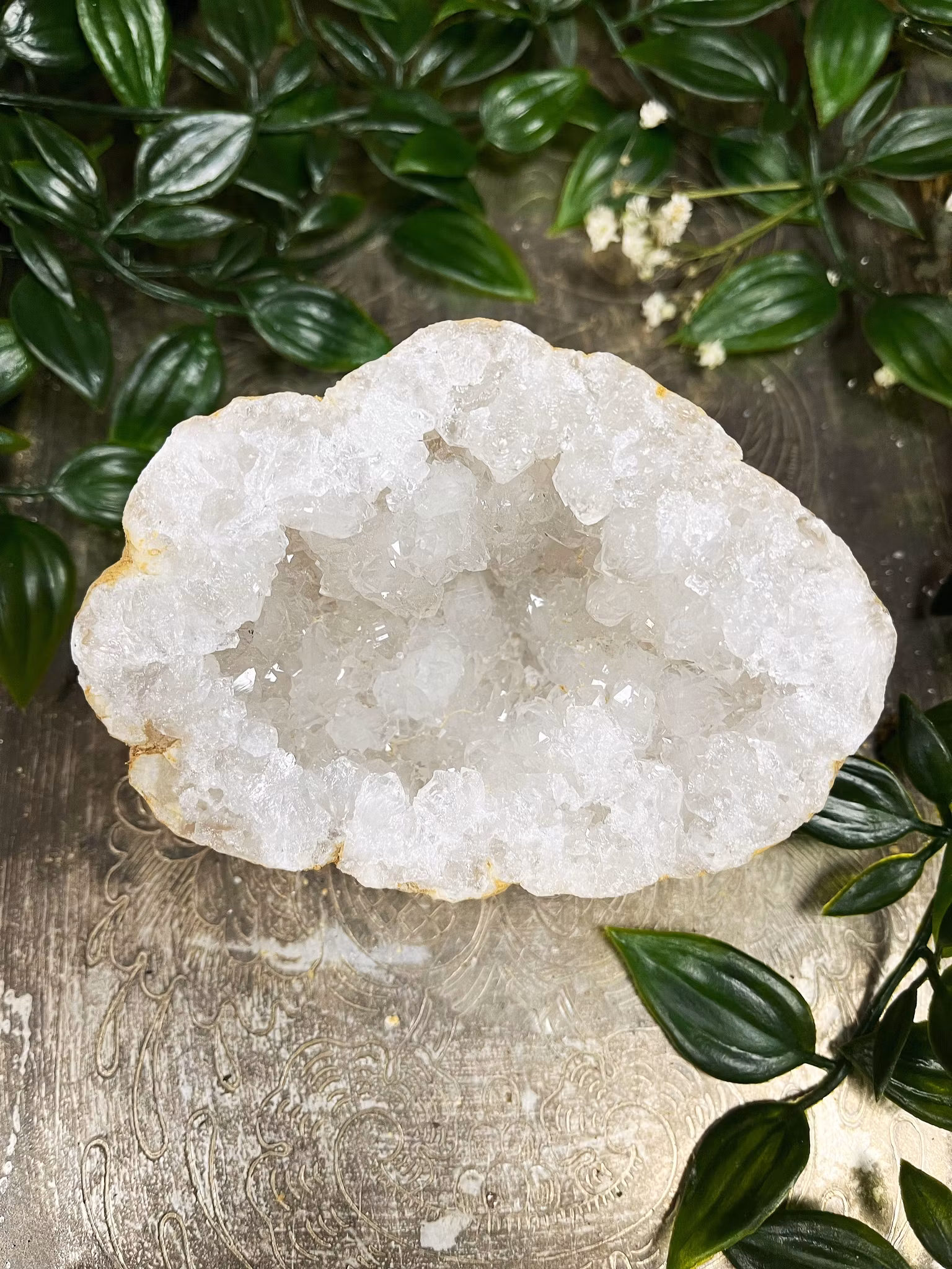Vit kalcit geod halv #4